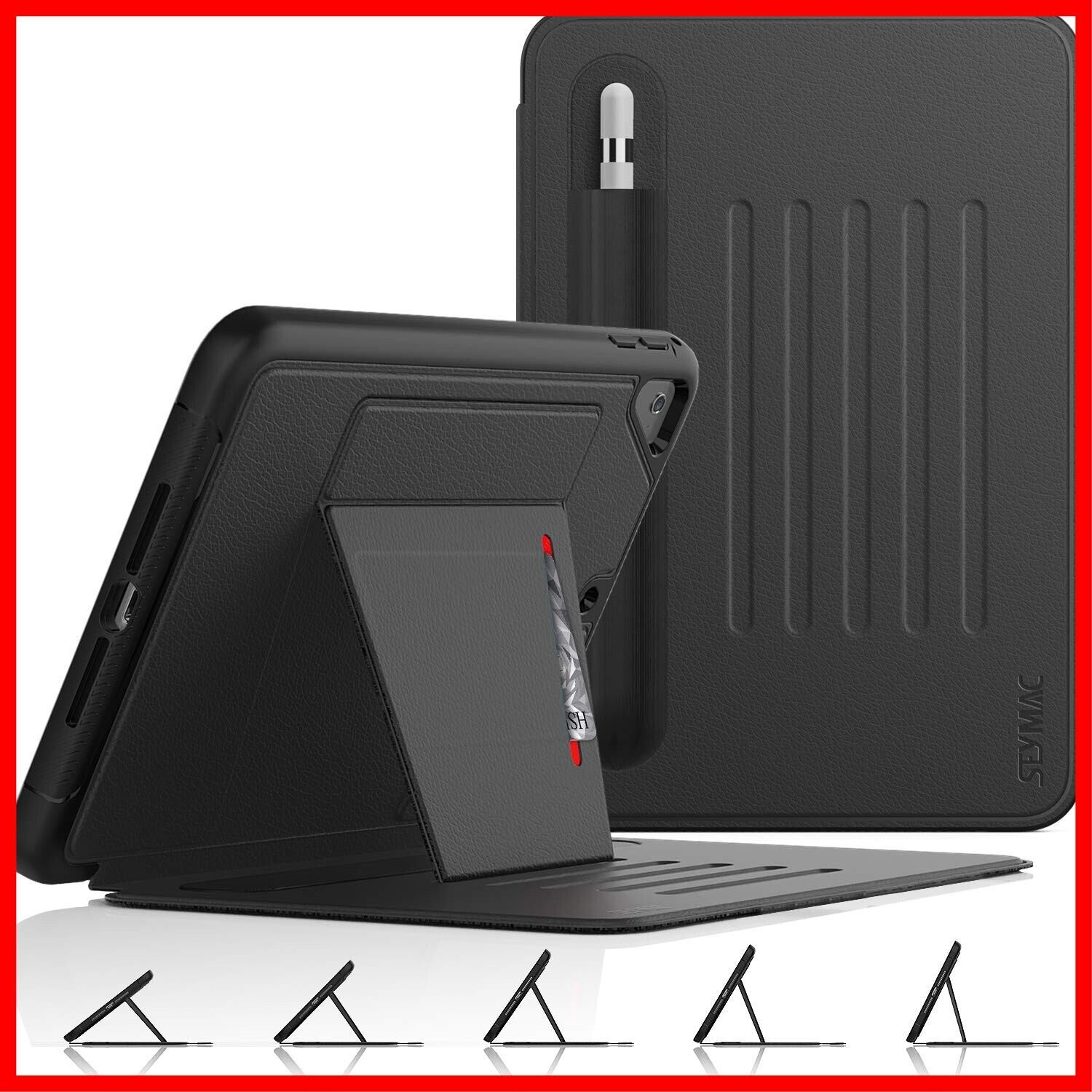 【特価商品】SEYMAC stock ケース iPad Mini 5/Mini 4 (2019/2015) 7.9インチ ケース 耐衝撃 多角度横置き調節 オートスリープ ペン収納 カード収納 強磁力全面保護カバー(ブラック)(適格請求書発行事業者) | カウカウ物販