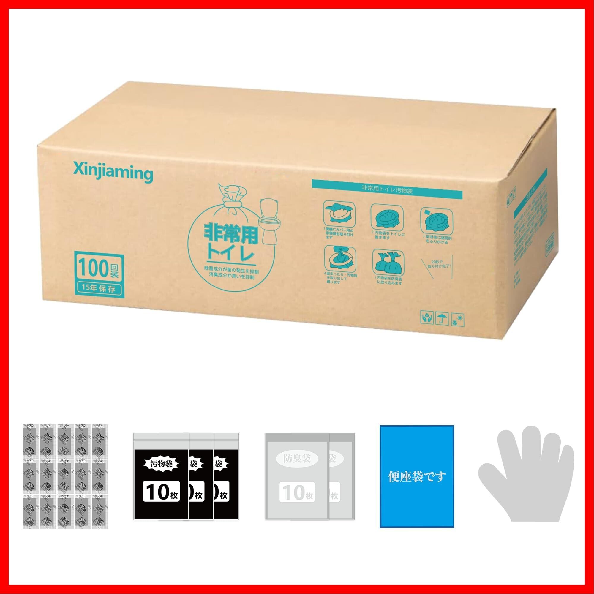 【セット内容】 黒色ポリエチレンビニール袋 10枚x10セット(100枚) 1枚ずつ取り出すことができます。ポリエチレンビニール手袋100組、凝固剤100個、防臭袋20枚、便座カバー4枚、ガイドブック1冊