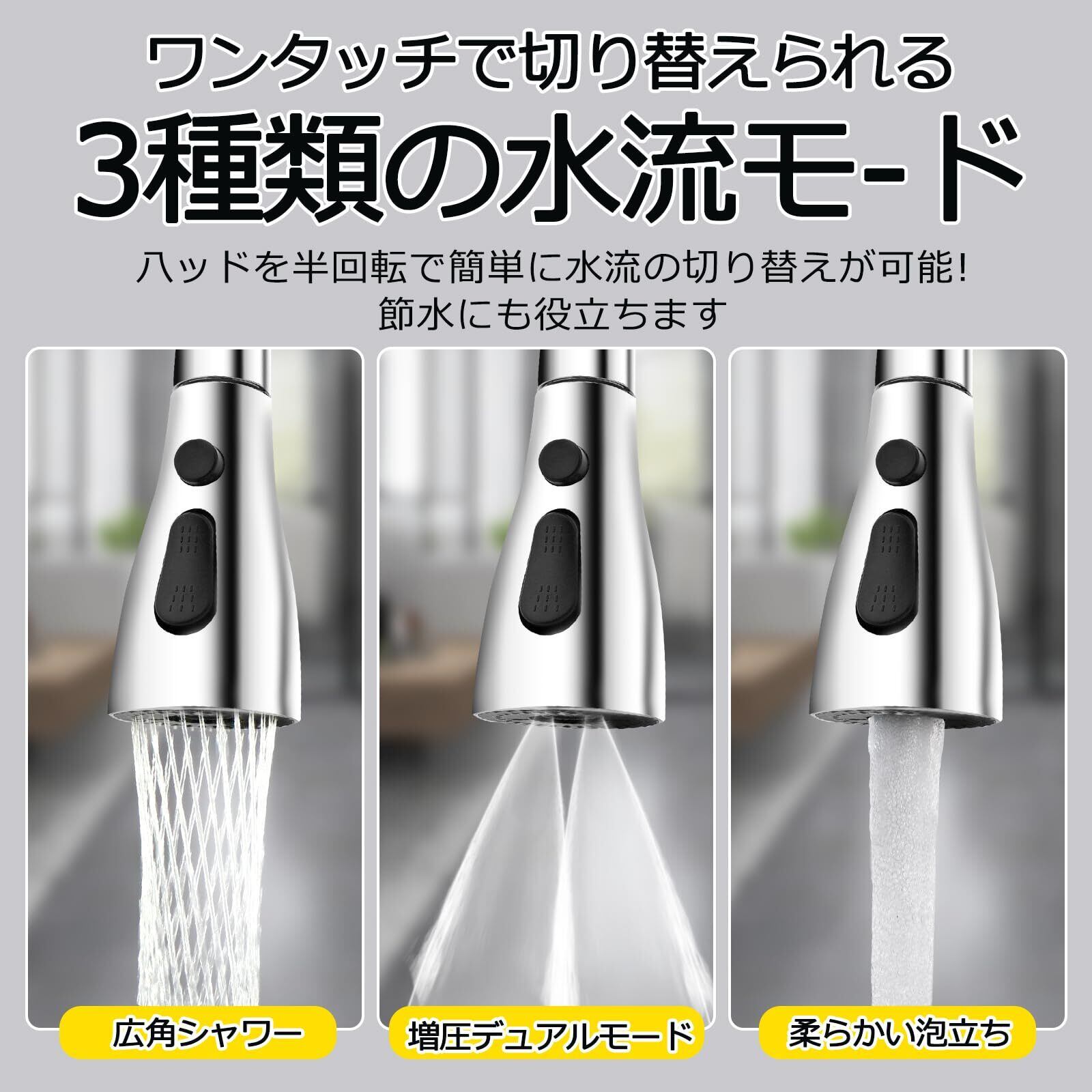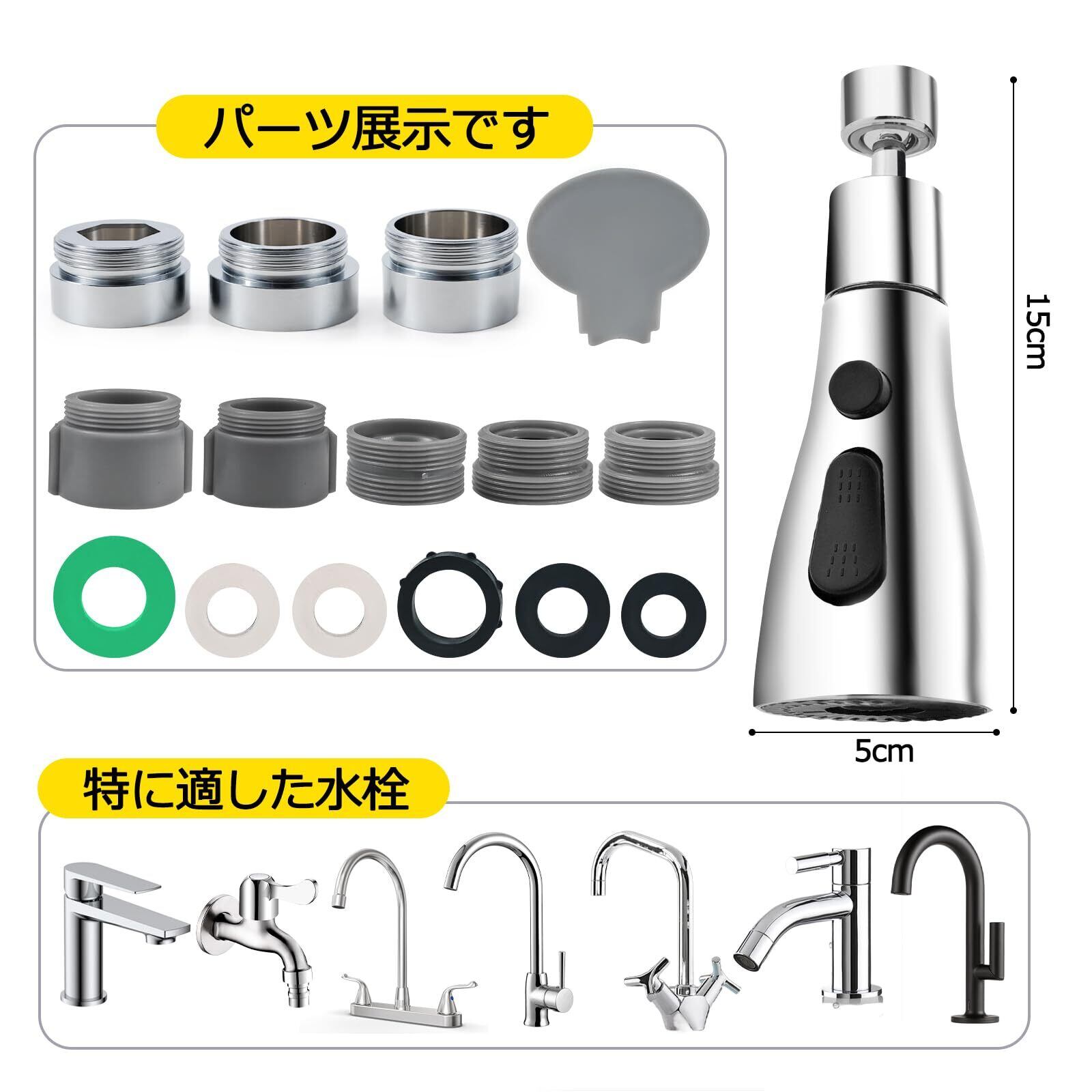 【特価商品】XINIDEA キッチン蛇口シャワーヘッド【3つの水流モード・360度回転・節水バブル機能】蛇口先端アダプター付き 外径/内径対応 水道 蛇口 シャワー キッチン シャワーヘッド シンク用 耐久性・錆びに強い | カウカウ物販