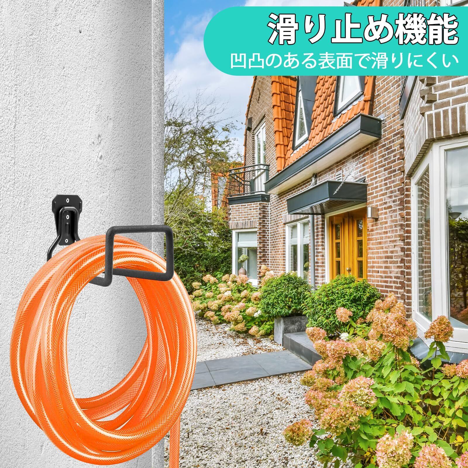 【壁掛けホースフック】取り付けが簡単で壁に穴を開け、ホースフックを壁にねじ込むだけで、ホースをぐるぐる巻いてかけしています。金属製で、屋外でのホース収納に最適。ホースハンガーは壁、柵、木製の壁、コンクリート壁、木などの幅広い壁面に取り付けることができます。