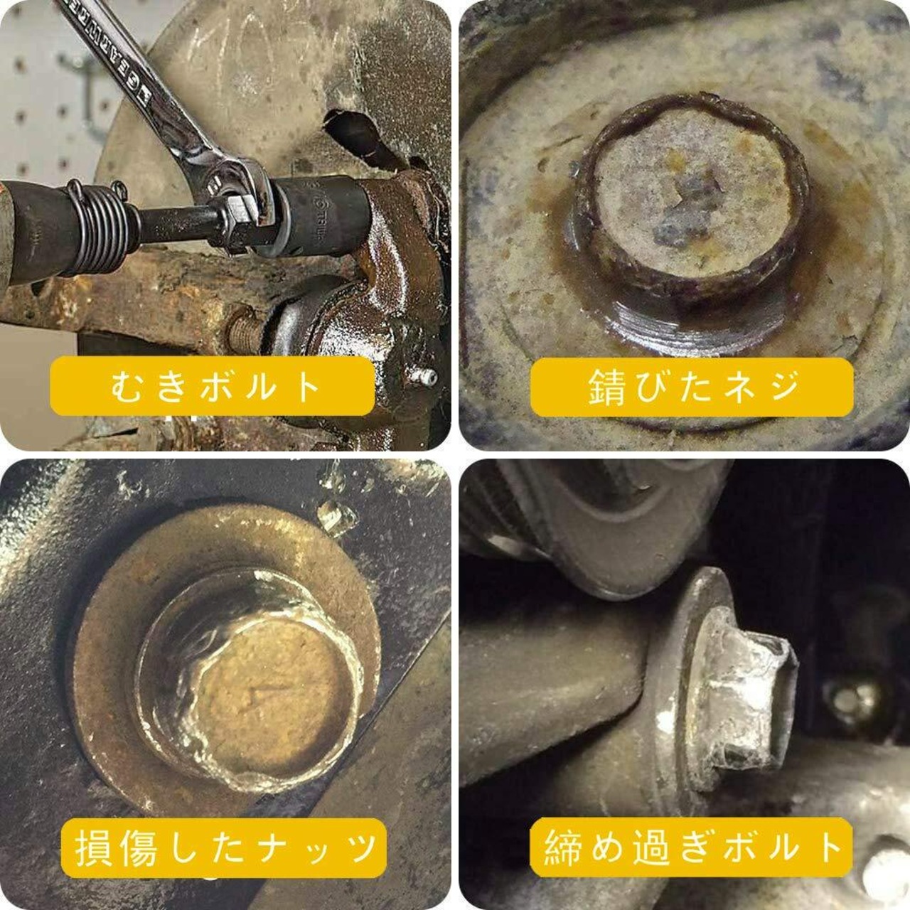 【用途】ボルトナットリムーバーセット 各種ボルター、ノズル、スローモーション、自動車修理、家具の組み立て、機械の点検や修理などのため一般産業にもよく使用される。