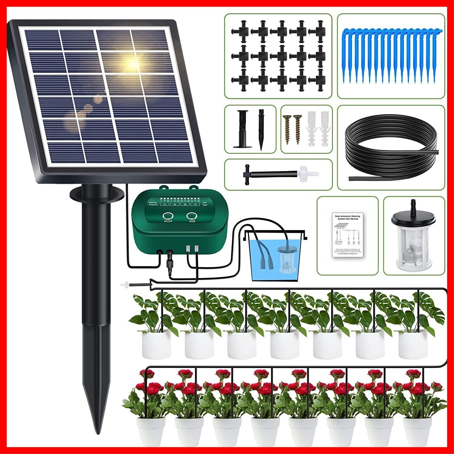 【特価商品】HUIZHOU 自動水やり 植物 ソーラー最新点滴灌漑システム、12個のタイマーモードの自動灌漑システム+15Mホースを持ち、ガーデン、ベランダ植物、アウトドア盆栽に用いられる、同時に15鉢の植物に水をかけることができる | カウカウ物販
