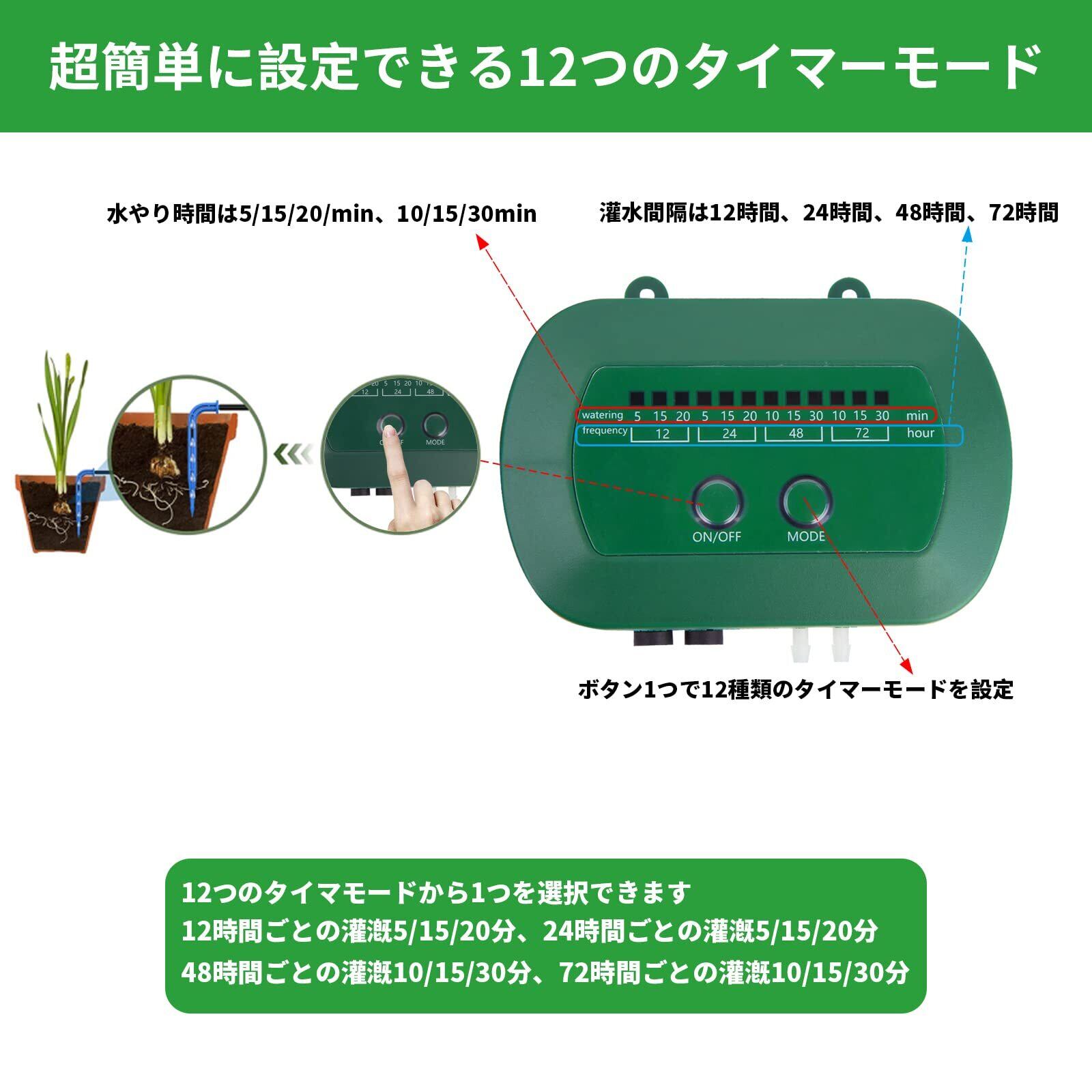 最新の太陽光灌漑システムキット:HUIZHOU自動太陽光灌漑システム計時モードは12種類の計時モードを調節でき、灌漑時間は5/15/20/30分、灌漑周波数は12/24/48/72時間である。通常の点滴灌漑と比べて、6種類の点滴灌漑モードを追加し、少なくとも90%の水を節約することができ、より科学的で便利なだけでなく、大量の水を節約することができます。交流電流は必要ありません。
