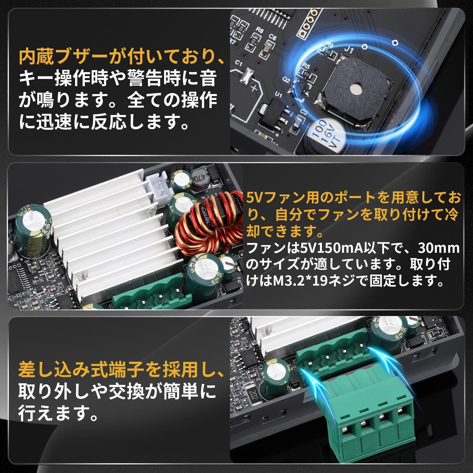 【製品仕様】入力電圧範囲:DC6-36Vに対応し、出力電圧:DC0.5-36Vおよび出力電流:0-4.5Aが調整可能です。出力電力は40Wで、これにより、様々なアプリケーションにおいて安定した電力供給が可能です。