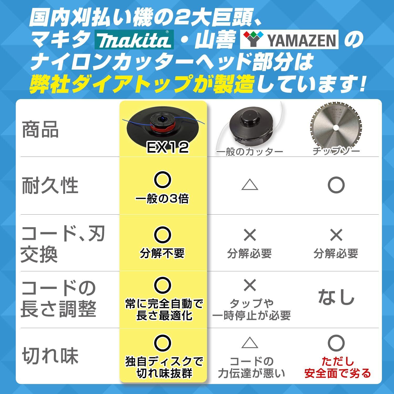 Diatop 12インチ 全自動繰り出しナイロン コード カッター EX12 (直径32cm) ダイアトップ フルオート ほぼ全ての国内エンジン式 電動 刈払い機対応 草刈り 替え刃 芝 壁際 低騒音 静音 ブレード 薄型 軽量 石 タイル ワイヤー 雑草 よもぎ せいたか草 ススキ 除草