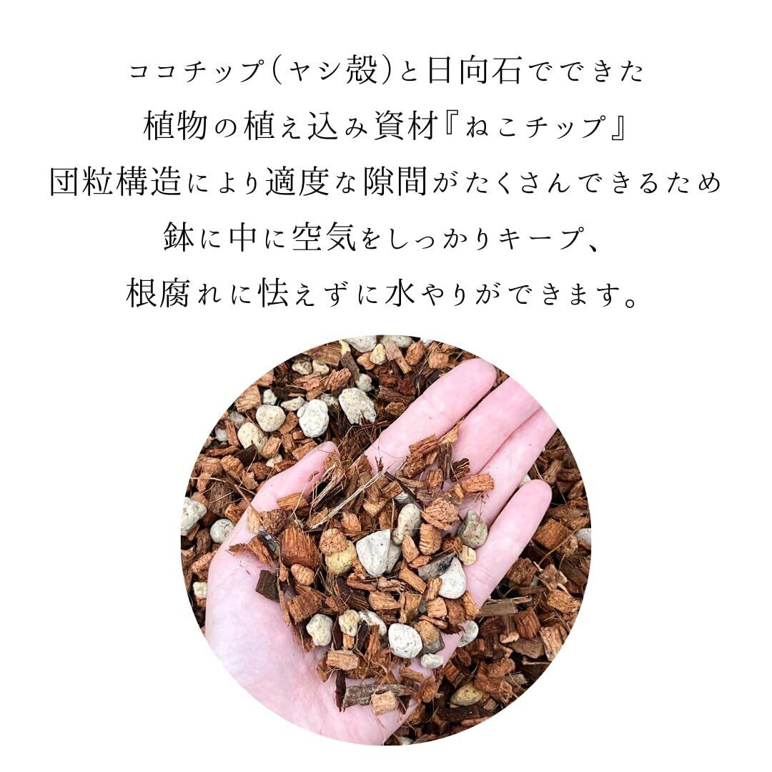 『いつ水やりするの?』にもう悩まない! ココチップと日向石でできた植物の植え込み資材『ねこチップ』 団粒構造により適度な隙間がたくさんできるため 鉢に中に空気をしっかりキープ、根腐れに怯えずに水やりができます。 ・多肉も観葉植物も同じタイミングで水やりができる! ・軽くて、手が汚れず、見た目がかわいい ・質の良い軽石を何度も何度も洗い、ココチップをふるいにかけて微塵を少なくしています。 当店所有の農園でも使用していますが、どの品種も、2〜3日に一回たっぷり水やりをしています。 ※しっかりと水を浸透させれば1週間に一度程度の水やりでも問題ありません。 ️さっと一部に水やりをしても水が通り抜けてしまいます。全体にたっぷりと、ザーザーお水やりするのがコツです!新しい空気もたくさん入れてあげることで植物はもっと元気に育ちます。 ️どんな土でも植え替え後は植物にダメージがあります。室内環境が20〜25度に一定に保たれている場合を除いて、最低気温が15度以上あり、猛暑ではない(暑すぎない)季節に植え替えをおすすめします。 ️植え込む植物の状態や環境変化のストレスなどで弱っている場合は腐ってしまう場合もあります。 ️植物に対して大きすぎない、ちょうど良いサイズの鉢への植え替えをおすすめします。 《 ねこチップ名前の由来 〜どうして猫?〜 》 園芸の魅力を発信するYouTubeが大人気!nekoteitoさん(通称:ねこさん)が考案された資材になります。 呆れるほど下処理をし、植物が元気に大きく育ってほしいと想いを込めた、室内園芸に特化した用土です。 ねこチップ(M) 材料:ココチップ(3S):軽石= 2:1 10Lは5L×2袋でお届けします。 20Lは5L×4袋でお届けします。