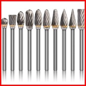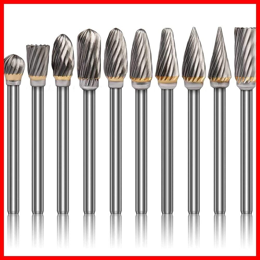 Wolfride リュータービット タングステン鋼でゴリゴリ削れる超硬カッター 金属加工用 超硬ドリルビット ロータリーバー(3mm軸 刃幅6mm)10本セット