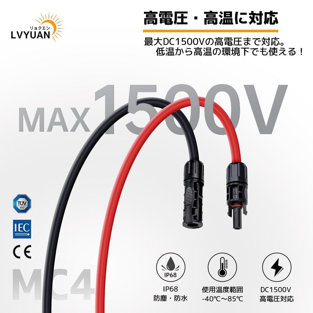 LVYUAN MC4 ソーラーケーブル 2.5sq 13AWG DC1500V 長さ5m 最大電流約35A 最大電圧1500V(DC) IP68防水 ソーラー 延長 ケーブル ソーラーパネル接続用 コネクタ付きソーラー用ケーブル MC4コネクター ソーラーコネクター 2本セット品(赤線5m+黒線5m)