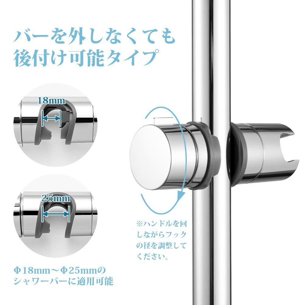 OFFO シャワーフック 大口径 φ18mm~25mmスライドバー対応 シャワーヘッドホルダー修理交換用 シャワーヘッド高さ・角度自在調整 工具不要 取付簡単