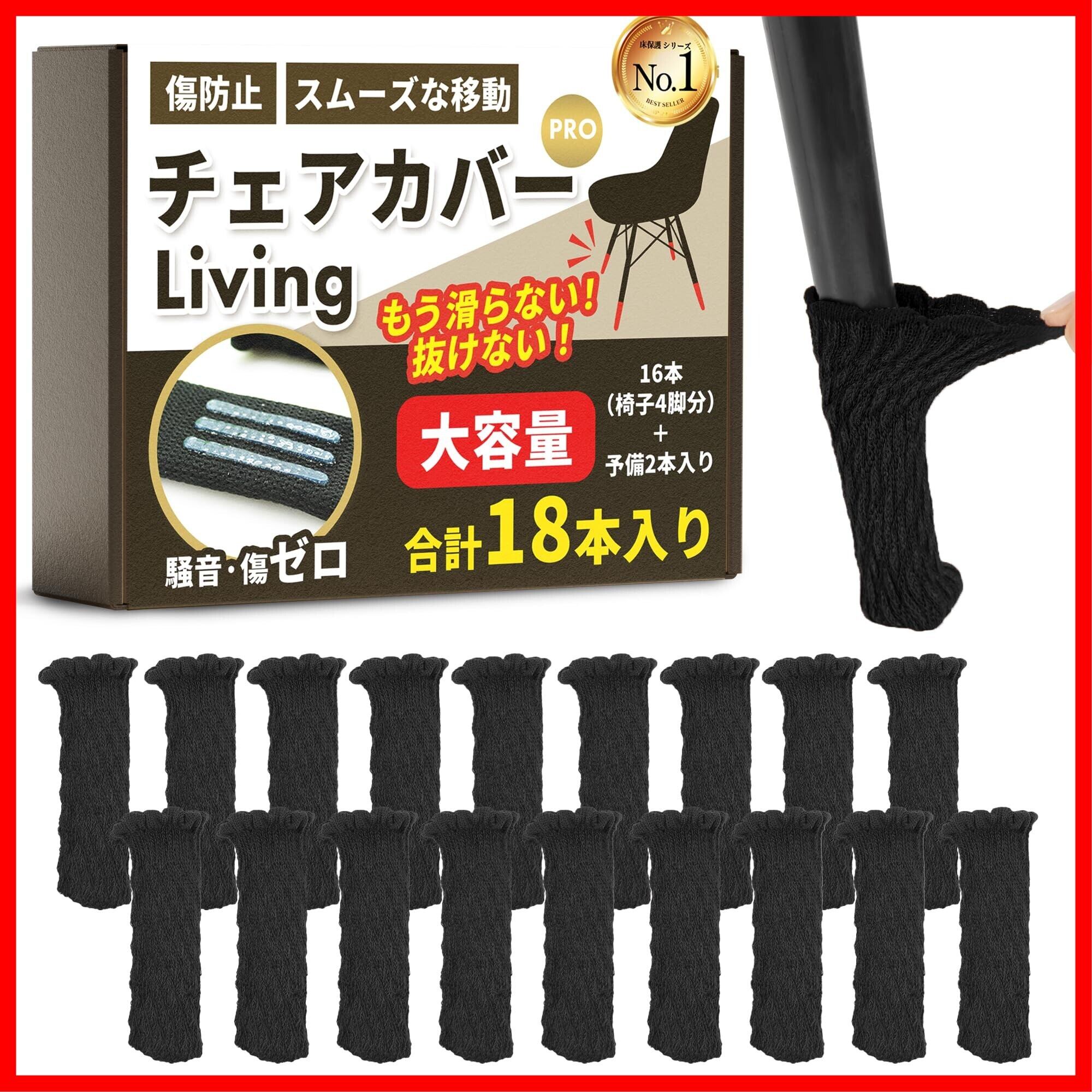 【家具職人監修】 椅子 脚カバー 静音 キズ防止 スムーズ移動 ズレない 18本入り(4脚分+予備2個) イス専用設計 保護 フィット Living Pro 大容量 引越し (ブラック)