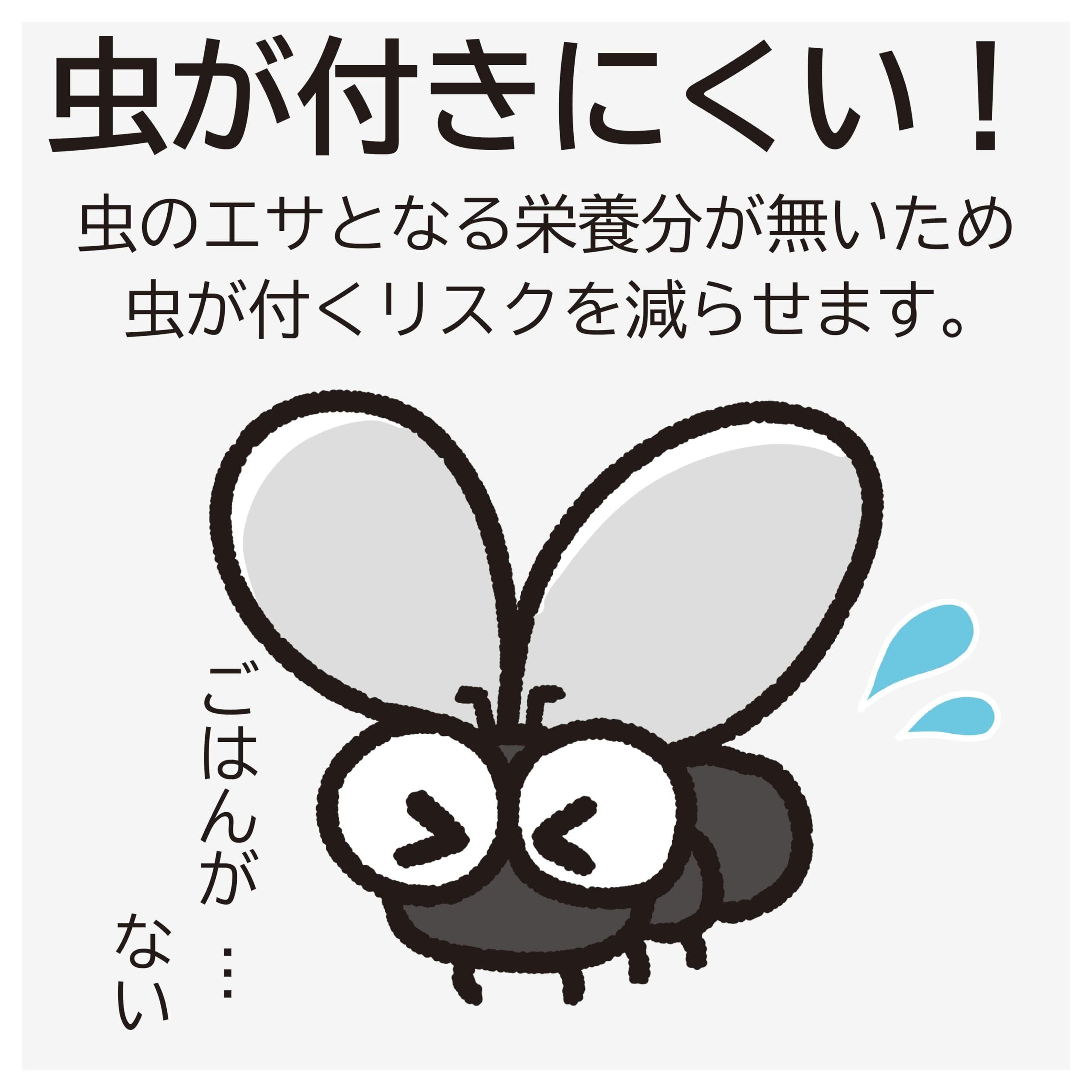 虫を見る機会を減らす:虫などの発生につながる栄養成分を一切使用していないため、虫を見る機会はほぼゼロになります。お部屋の中での栽培に最適です。防虫成分も一切含みませんので安心してご使用いただけます