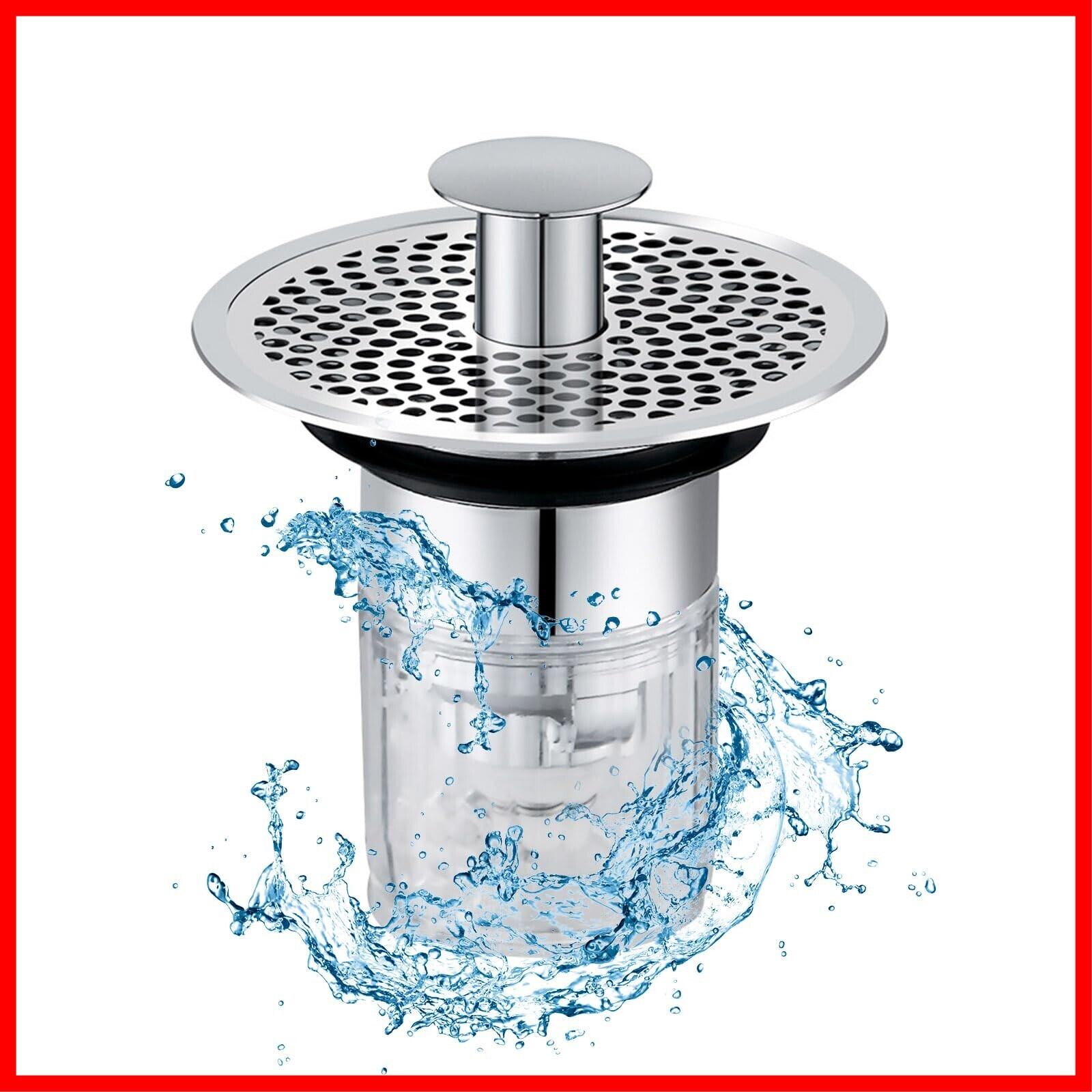 洗面台 ポップアップ 排水栓 排水口 ごみ受け ステンレス製 目詰まり防止 キッチン用 台所用 浴室 (Type1, シルバー)