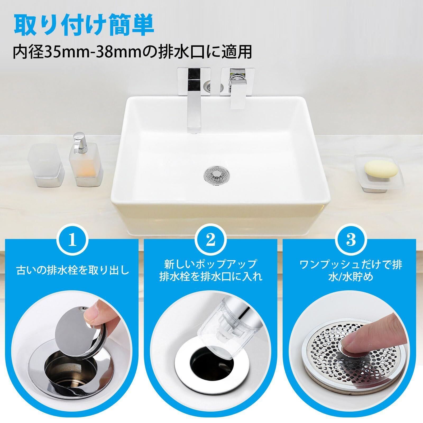 【取り付け簡単、使いやすい】:古い排水栓を取り出して、新しいポップアップ排水栓を排水口の穴に差し入れるだけで設置完了です。誰でも簡単に取り付けるポップアップ排水栓。ボタンをワンプッシュだけで簡単に水を流したり溜めたりすることができます、使い勝手よい。