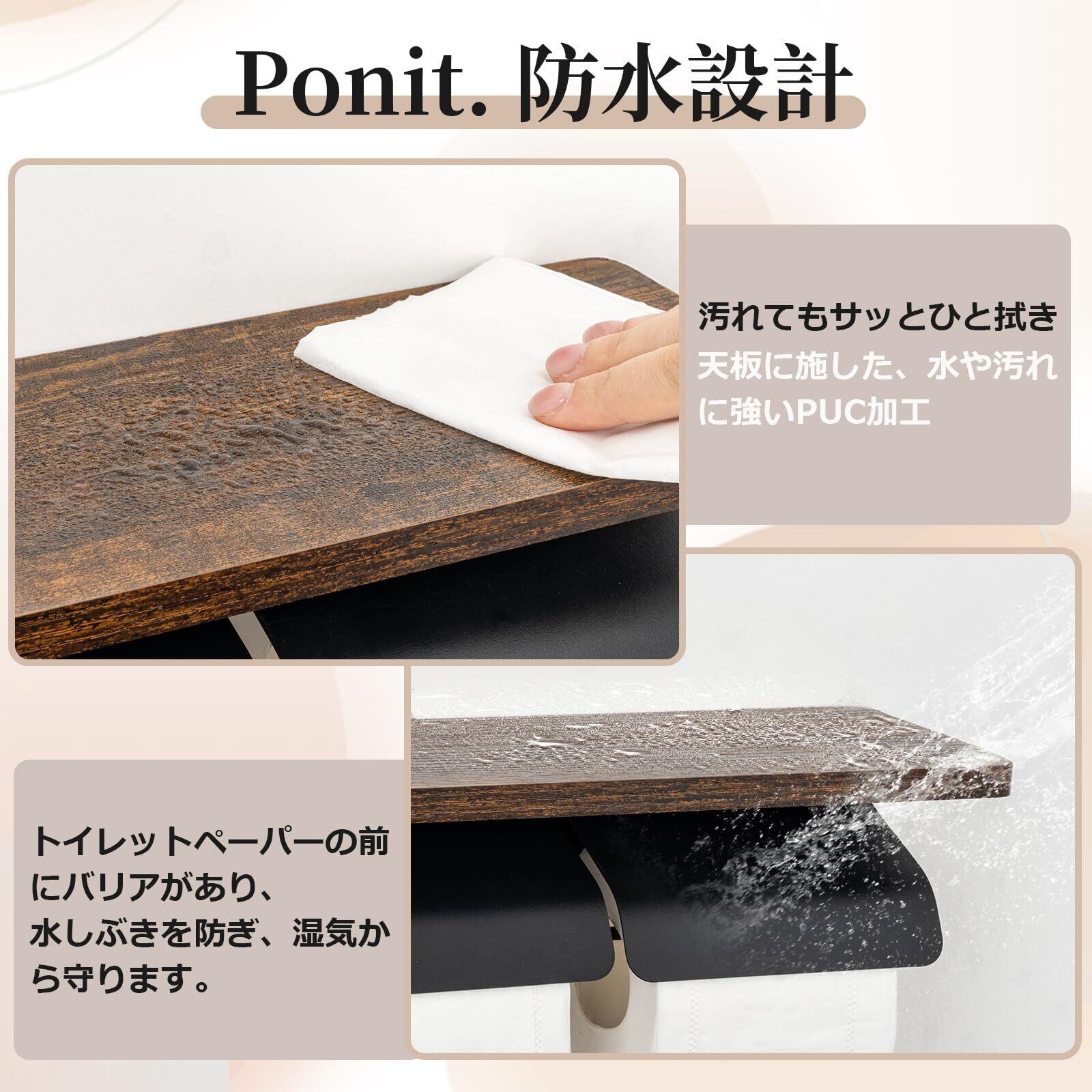トイレットペーパーホルダー 木製 棚付き スマホ置き インテリア 賃貸 DIY おしゃれ 2連 簡単設置 補充楽 飾り棚 ペーパーホルダー 収納対応紙巻器(ブラウン×ブラック ダブル)