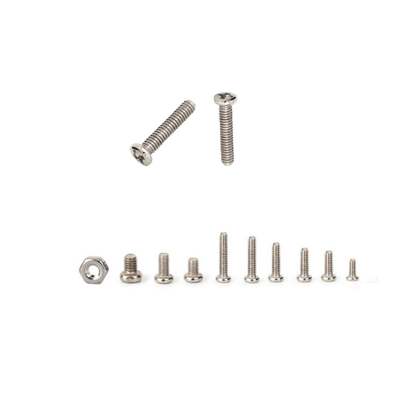 丸頭 小ネジ 十字穴付き プラスネジ ボルト ネジ なべ頭 ボルト プラスネジ 炭素鋼 ニッケルメッキ 9サイズ M2x4 M2x5mm M2x7 M2x8 M2x10 M2X12 M2.5X3 M2.5x5 M3X4 各30個 M2六角ナット100個付き 370個セット