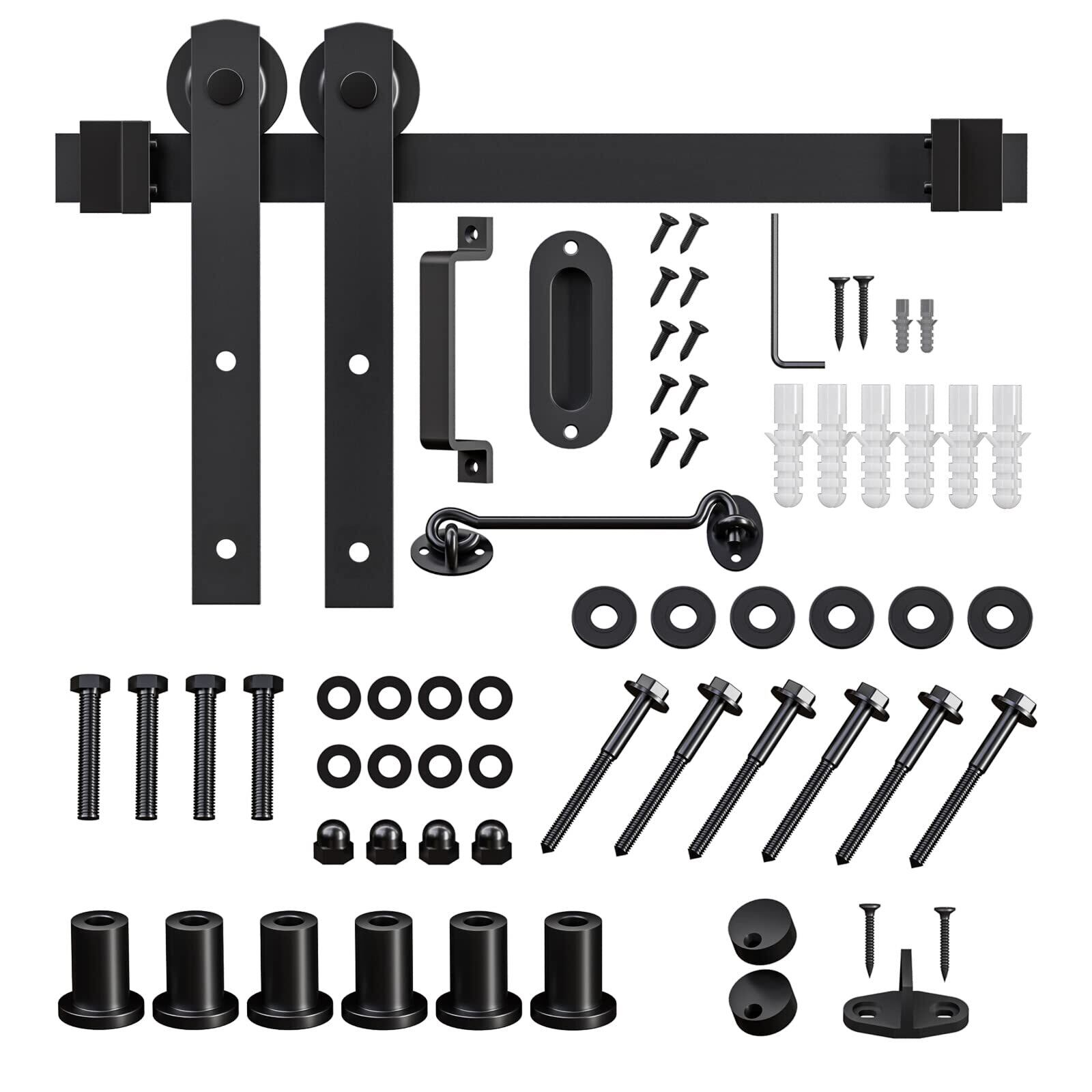 Signstek 吊り引き戸レール バーンドア金具 6FT/1.83m 引戸レール 室内ドア 引き扉 DIY 建具金物 トラックレール 片引き戸 木製ドア I型 5段式 ブラック