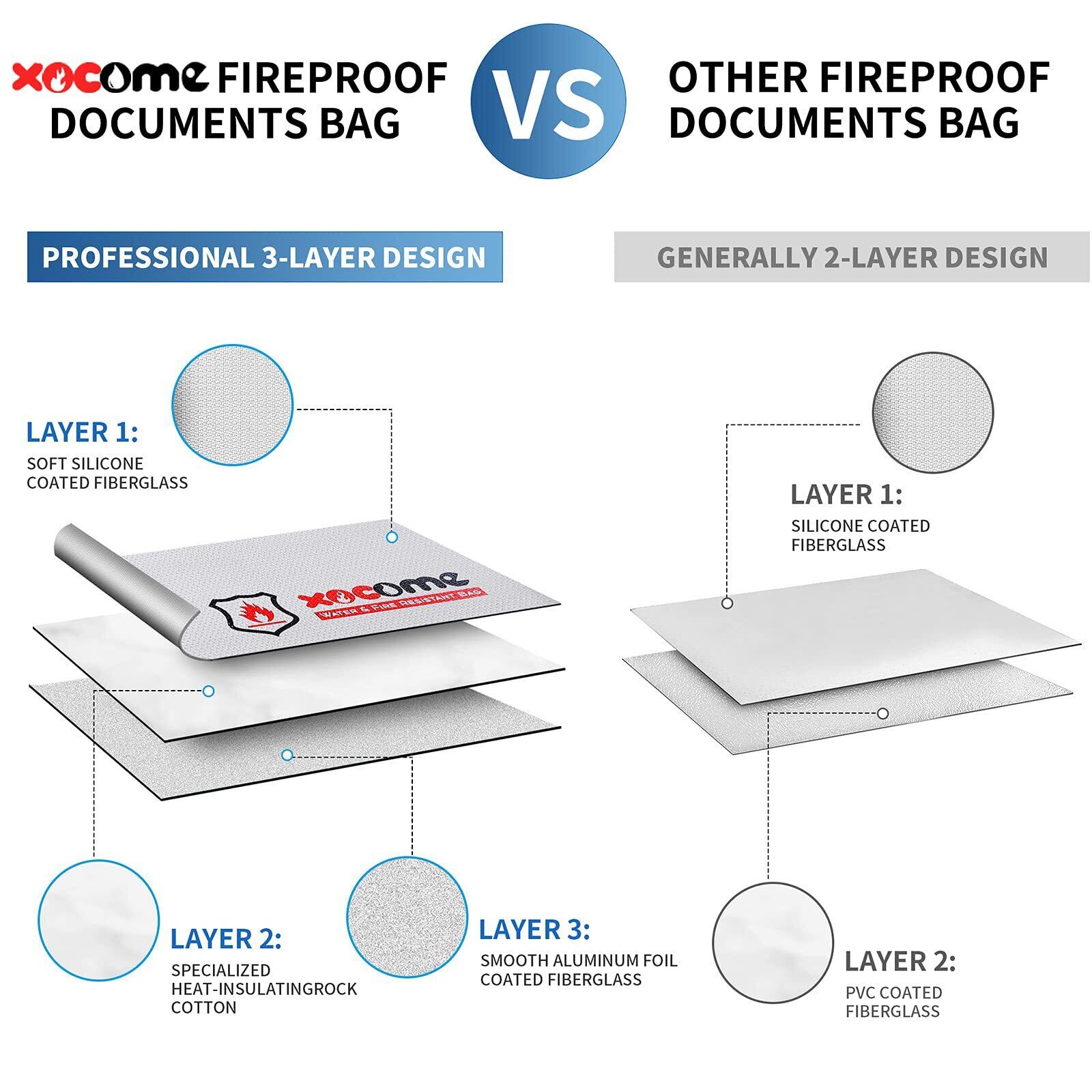 耐火バッグ 書類保管ケース 防火 防爆 防水 防災 耐熱2093℃ 現金収納 金庫耐火バッグ 手提げ 家庭用 A4サイズ対応 大容量 ジッパーとベルクロ付き 耐火袋(グレー)