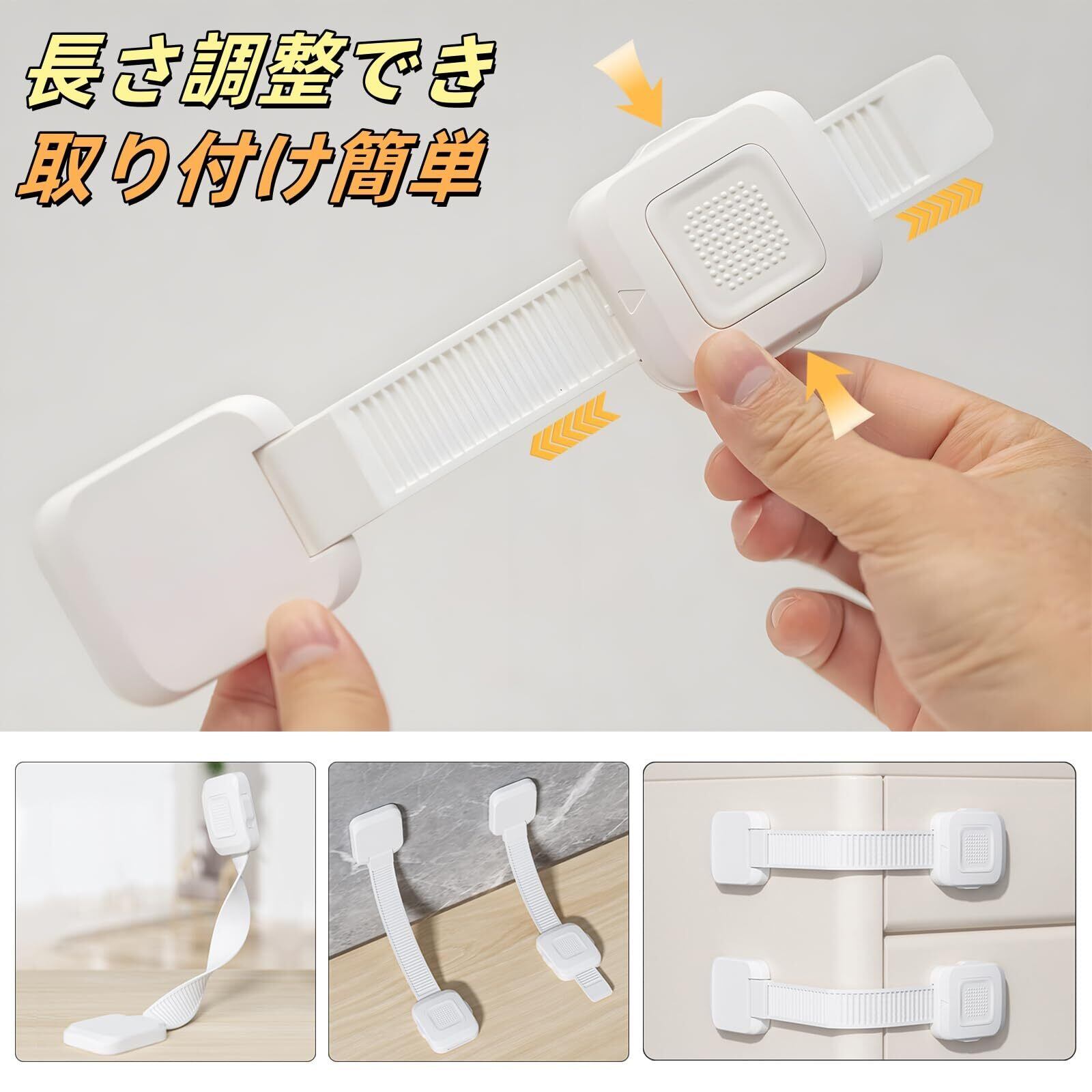 【幅広い適用範囲】冷蔵庫、キャビネット、ワードローブ、引き出し、両開きドア、本棚、雑多なラックなど転倒防止に適しています。基本的に平らなところであればどこでも設置可能です。凹凸のある壁紙や珪藻土壁などには使用できませんのでご注意ください。