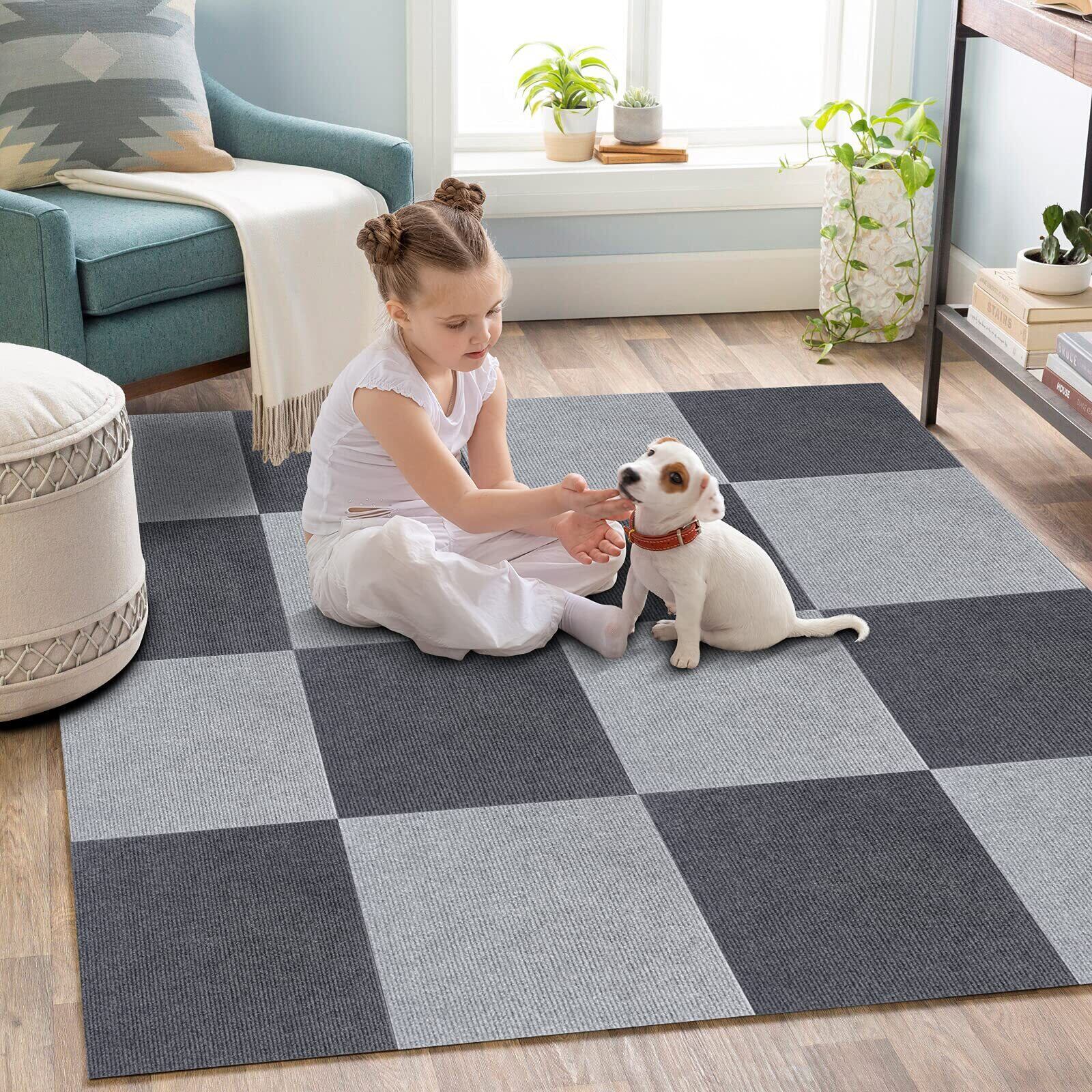 【アップグレード版 】 吸着マット ジョイントマット タイルカーペット ずれない 防音 洗える ペット/高齢者の滑り止め対策、30*30cm 40枚 グレー濃/薄