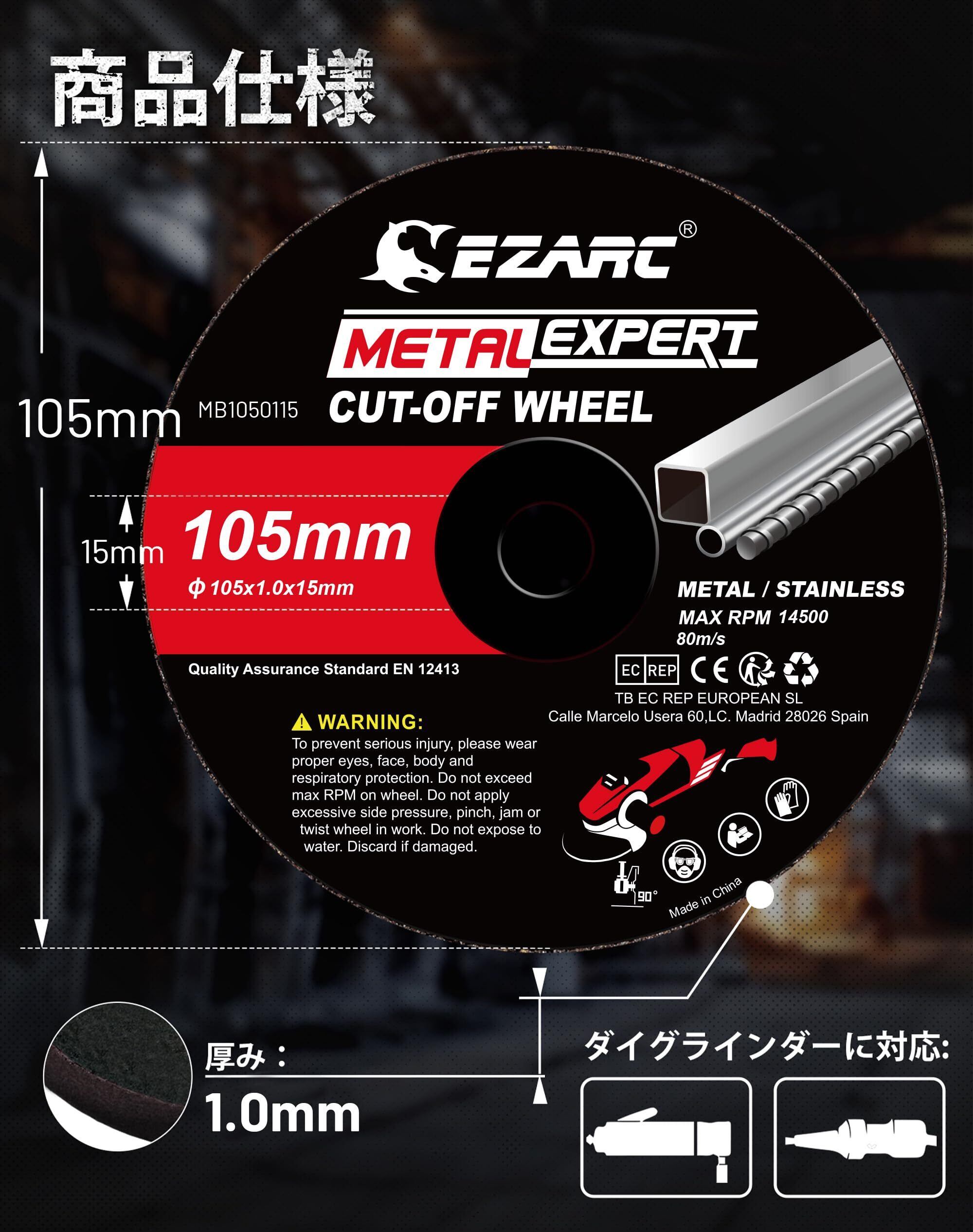 EZARC(イザーク) グラインダー 刃 25枚入 105mm切断砥石 1mm超薄型 鉄工用 105x1x15mm