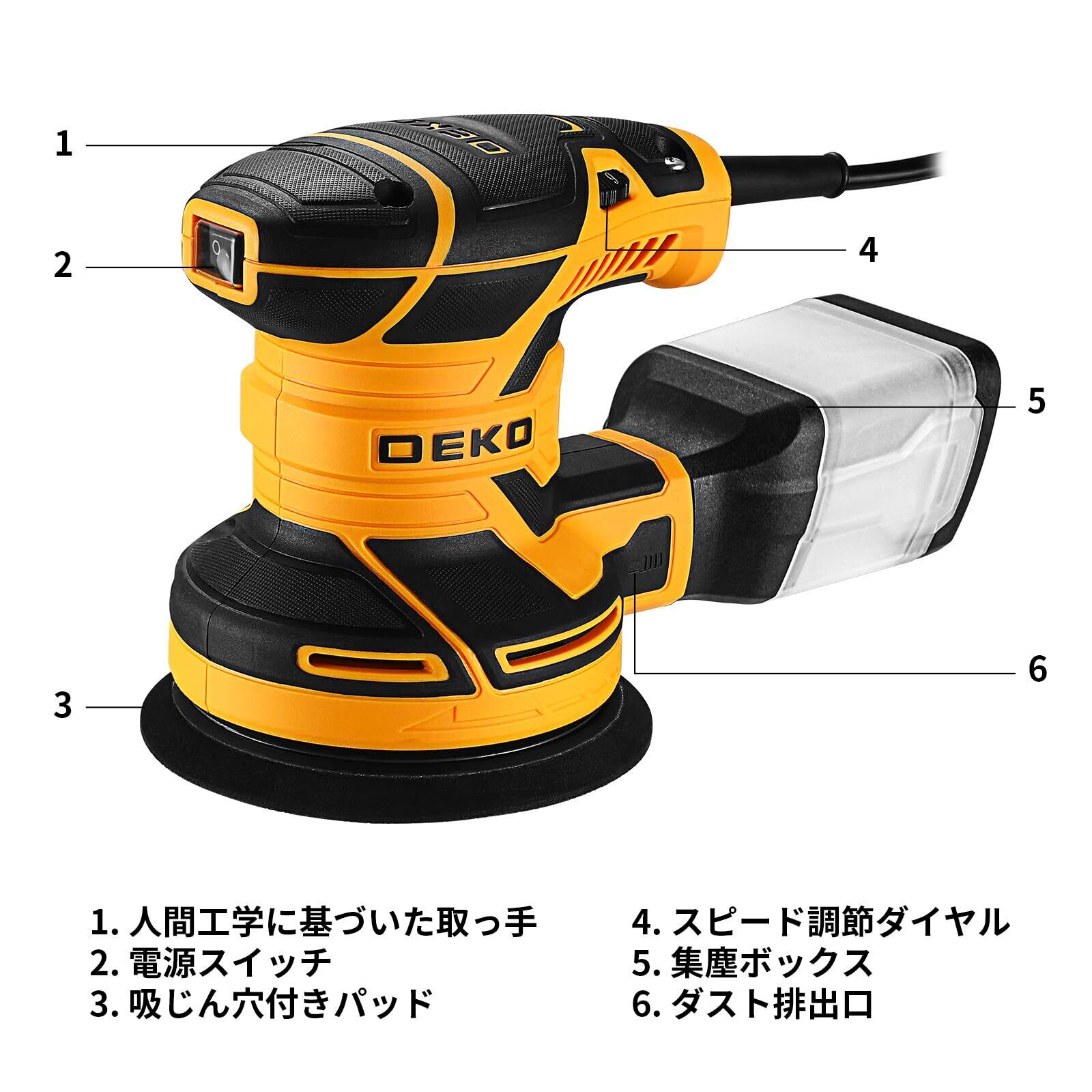 DEKOサンダー 電動 サンダー 300W 14000RPM 6段階無段変速 電動サンダー 高集塵システム マジックテープ式 サンドペーパー16枚 仕上げサンダー DIY 日曜大工 木工作業 研磨 仕上げ 荒削り ランダムサンダー