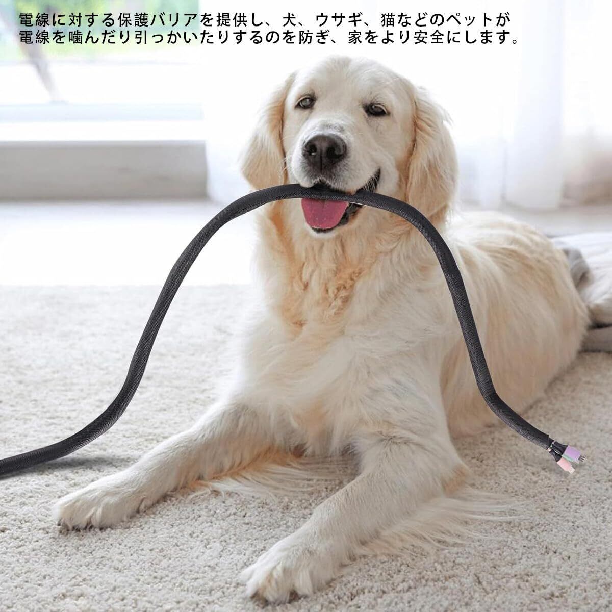 【特価商品】Menetop 配線カバー ペット 犬 猫 コード 嚙み防止 ペット コードカバー 猫 ペット ケーブルカバー 猫 対策 コード保護カバー コードプロテクター長さ約10M 内径13mm 黒 ケーブルクリップ付き 簡単に取付 (10M) | カウカウ物販