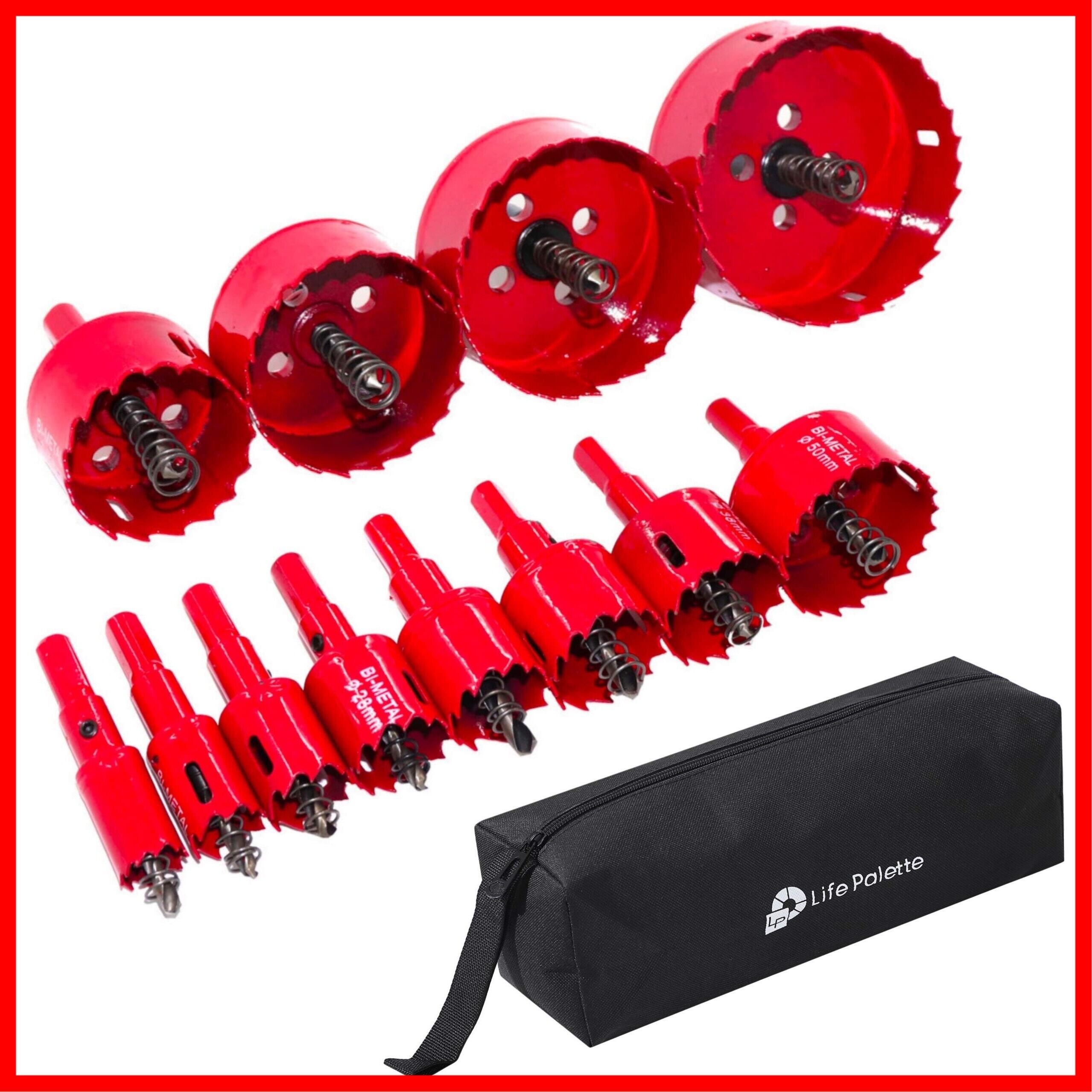 【新着商品】ライフパレット バイメタル ホールソー ホルソー セット 穴あけ 切削 木工 工具 工具ケース付き (12, 18 20 24 28 30 35 38 45 50 55 65 75mm) | カウカウ物販
