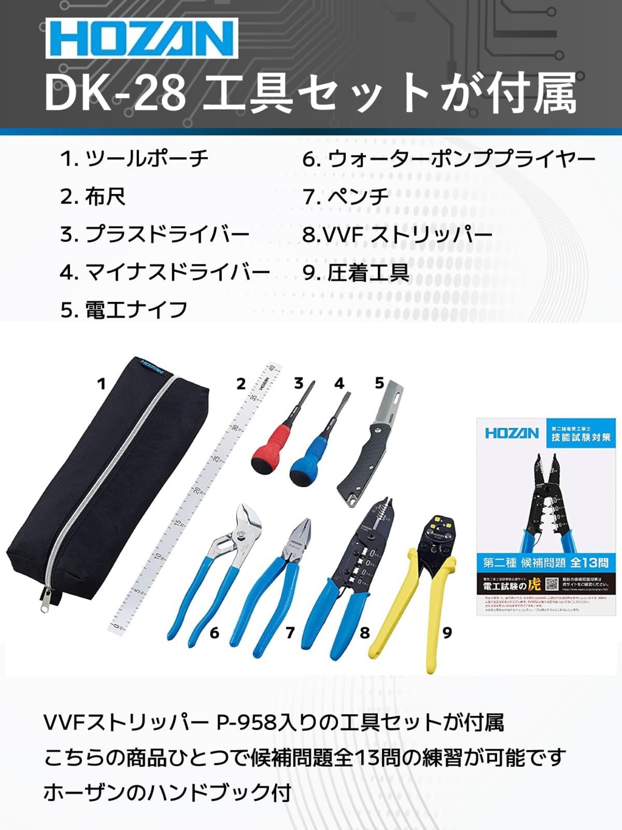 電気工事士 2種 技能試験セット 【1回練習用】 ホーザン工具+ガイドブック付き 電材館