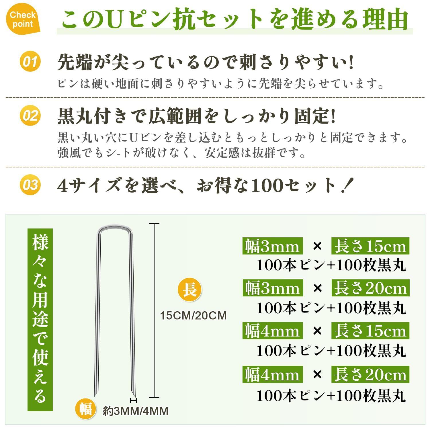 【在庫処分】X XBEN 防草シート 固定ピン 黒丸付き 幅4mm 長さ20cm 100本セット 除草シート 押さえピン 雑草防止シート 園芸シート Uピン杭 人工芝 uピン杭 ビニールマルチ 固定用 押さえピン 農業用防虫ネットu字釘 フック コ型ピン 農業用 変形に強い ステンレス 釘 | カウカウ物販