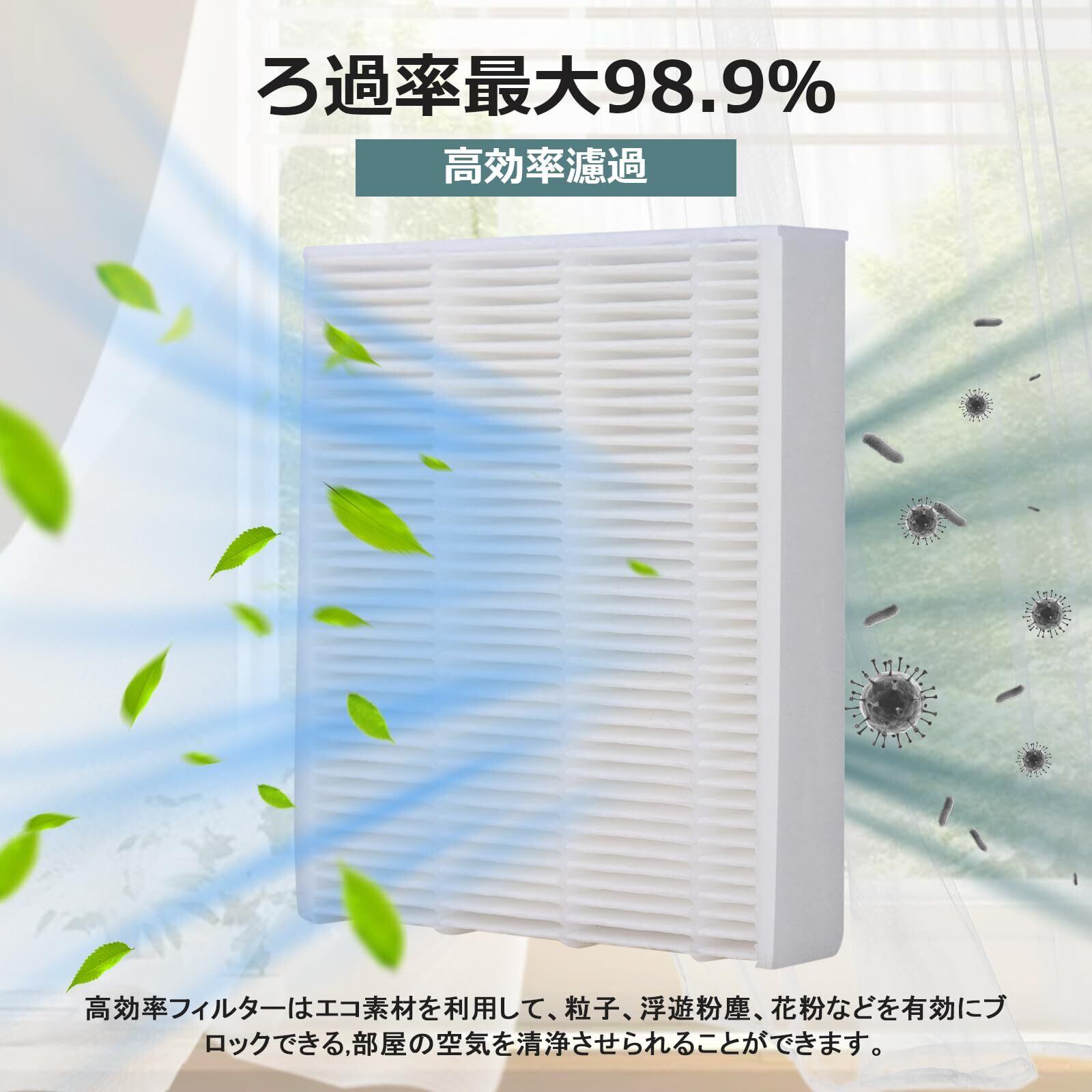 【高効率濾過】:高効率フィルターはエコ素材を利用して、粒子、浮遊粉塵、花粉などを有効にブロックできる,部屋の空気を清浄させられることができます。ろ過率最大98.9%
