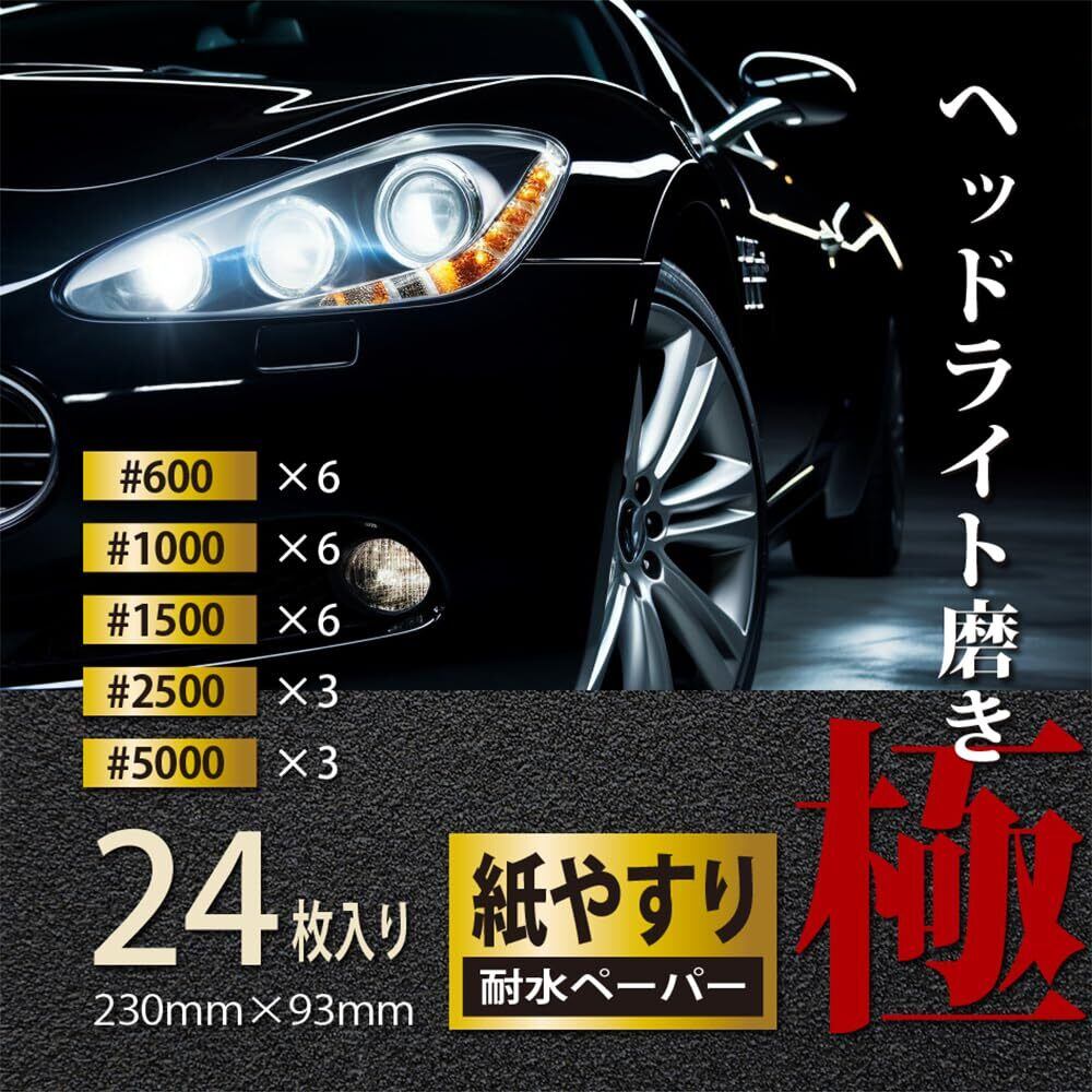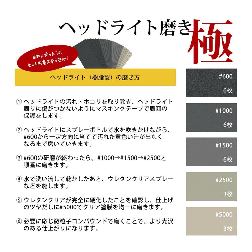 SEEK products ヘッドライト磨き 極 耐水ペーパー 24枚セット 5種類 #600-5000 サンドペーパー 紙やすり 金属 木工 補修