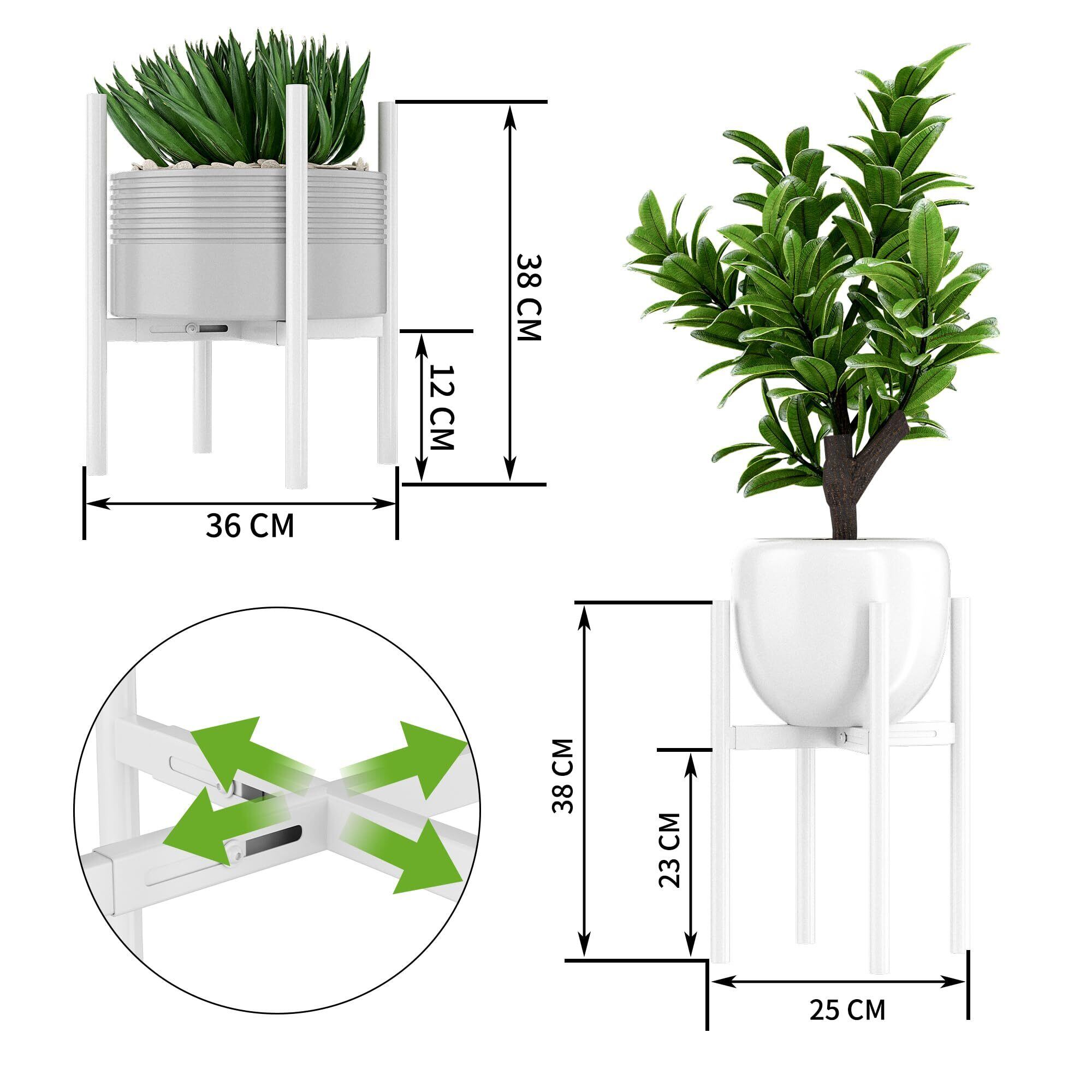 【伸縮可能な幅】外径20cm-30cmの多くのポットサイズに適合する植物ホルダーを 1 つ用意し、付属のツールでプランター幅にフィットするようにスタンドレールを引き出します。屋内用金属植物スタンドは、異なるサイズの植木鉢を置くことができ、植物が成長するにつれて 2 つの高さオプションを提供します。