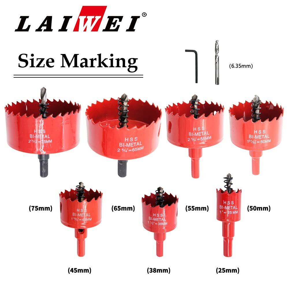 バイメタルホールソーセット、LAIWEI電気ドリルツール、ホールソー、薄い金属 木材 PVC用のドリルツール (20.22.25.32.42.53.55)