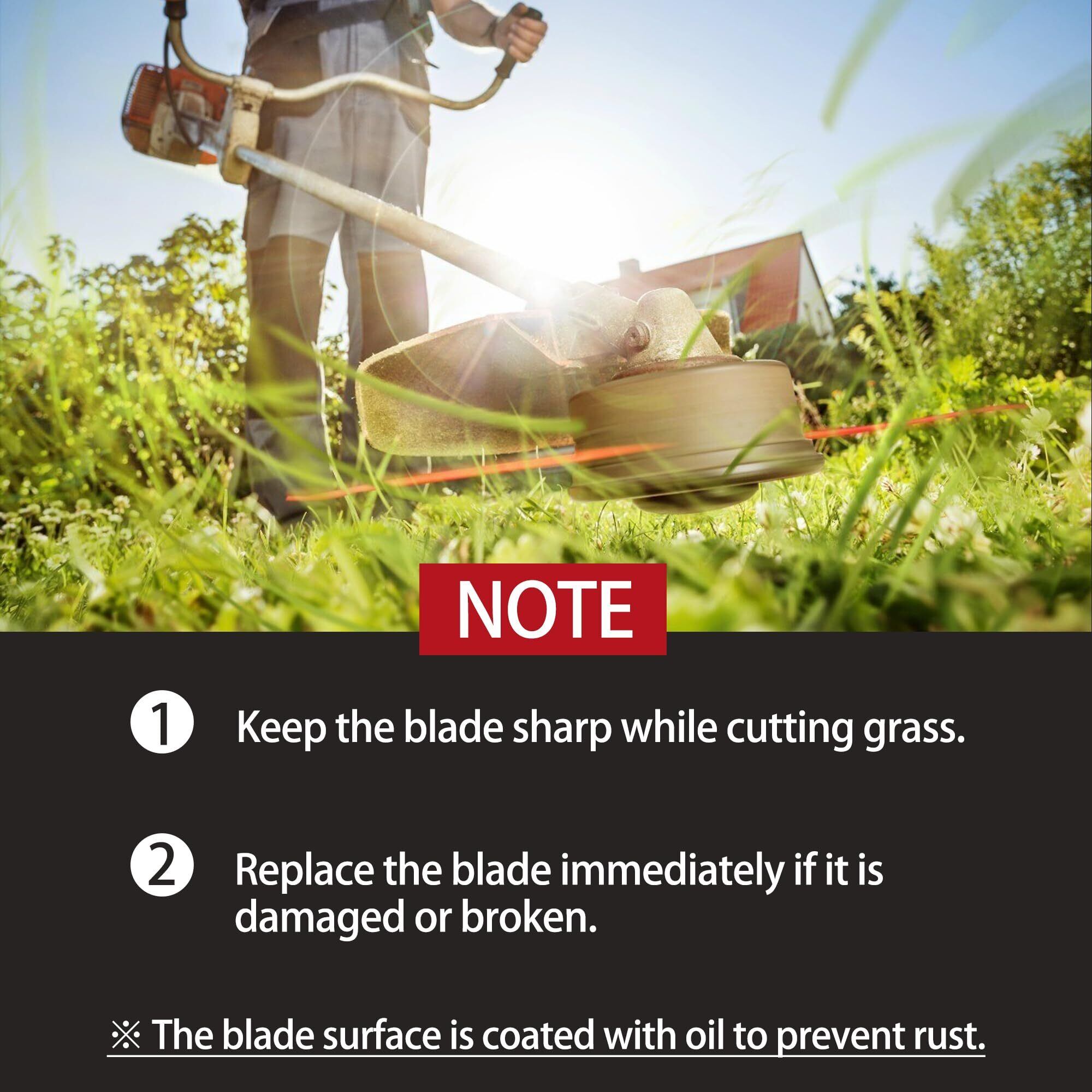 【切れ味の持続性】特殊加工された草刈り機の刃は、使い続けても切れ味が長持ちし、繰り返しの作業を減らすことでより効率的な草刈りを実現します。