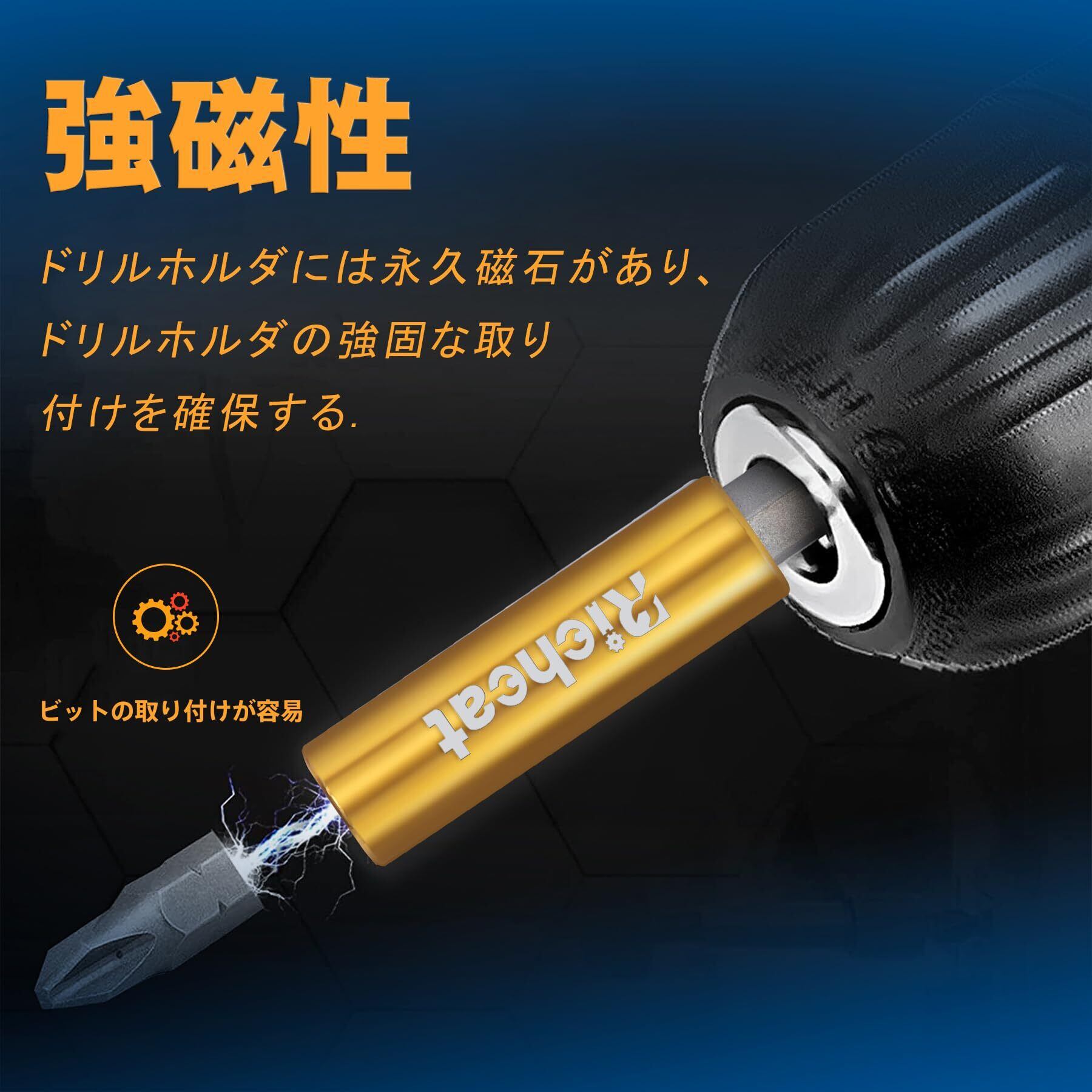 【磁気付き】ビットホルダーには磁気があり、迅速な接続または切断、運転中も所定の位置に留まります。また、マグネットタイプで取り付けたビットをしっかりホールドし、作業をよりスムーズに行えます。
