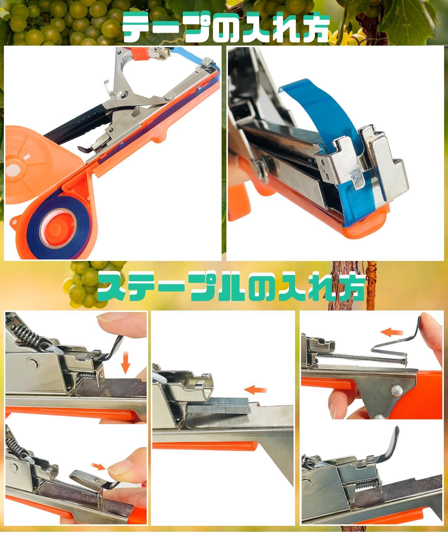 【製品仕様】材質:ステンレス鋼&プラスチック サイズ(約):35*25*2cm 最大結束径:40mm セット内容:誘引結束器本体*1個、結束テープ30m*10巻、替え刃*1個;ステープル*10000PCS カラー:オレンジ