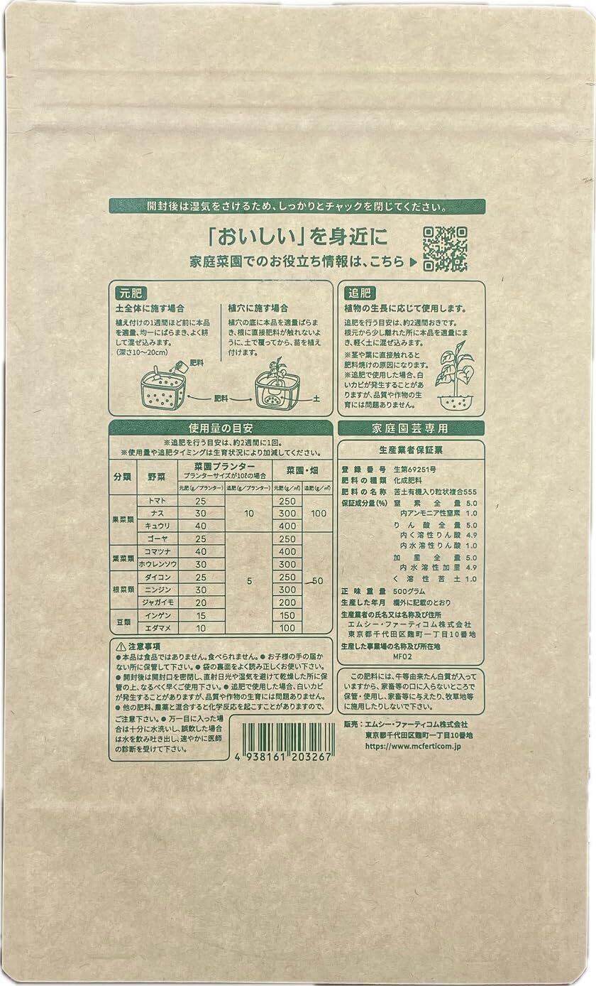 野菜をおいしくする家庭園芸用肥料「アミノイロ」 500g 5-5-5-マグネシウム1