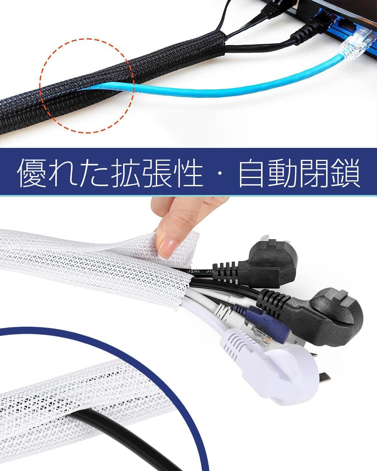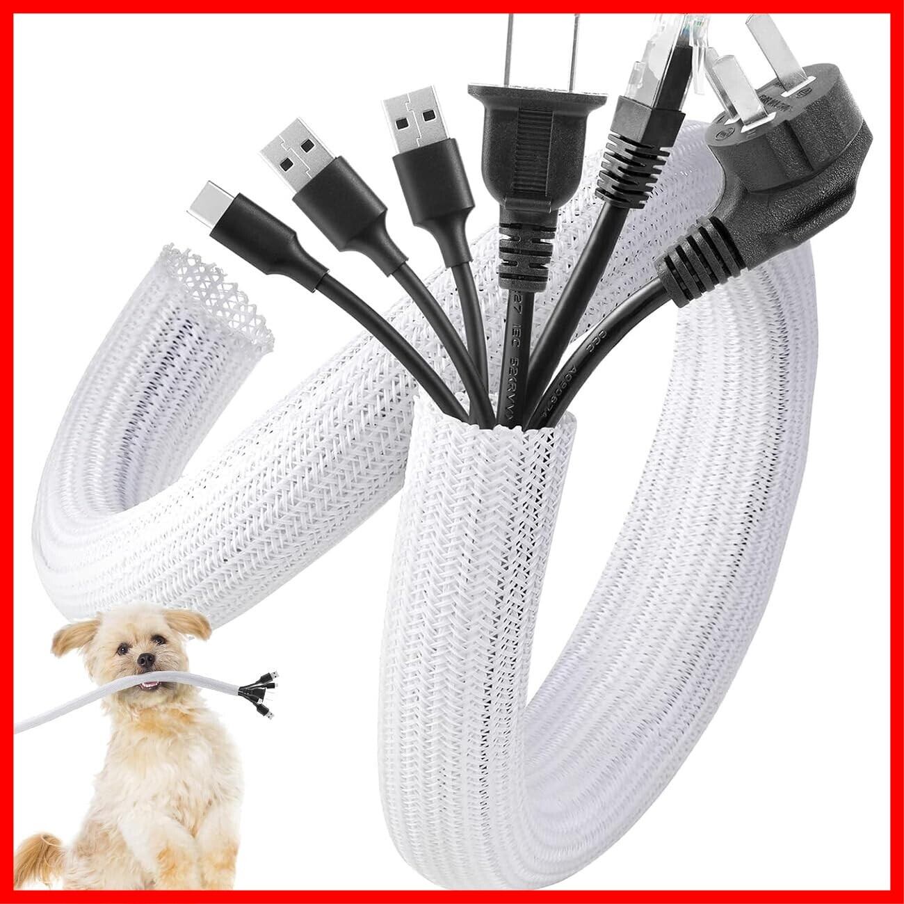 6M ケーブルスリーブ 編組ケーブルカバー コードプロテクター コードカバー ペット 噛み防止 ケーブル収納スリーブ 直径13mm 線まとめるやつ 配線管理 絶縁 防塵 (白, 6m)