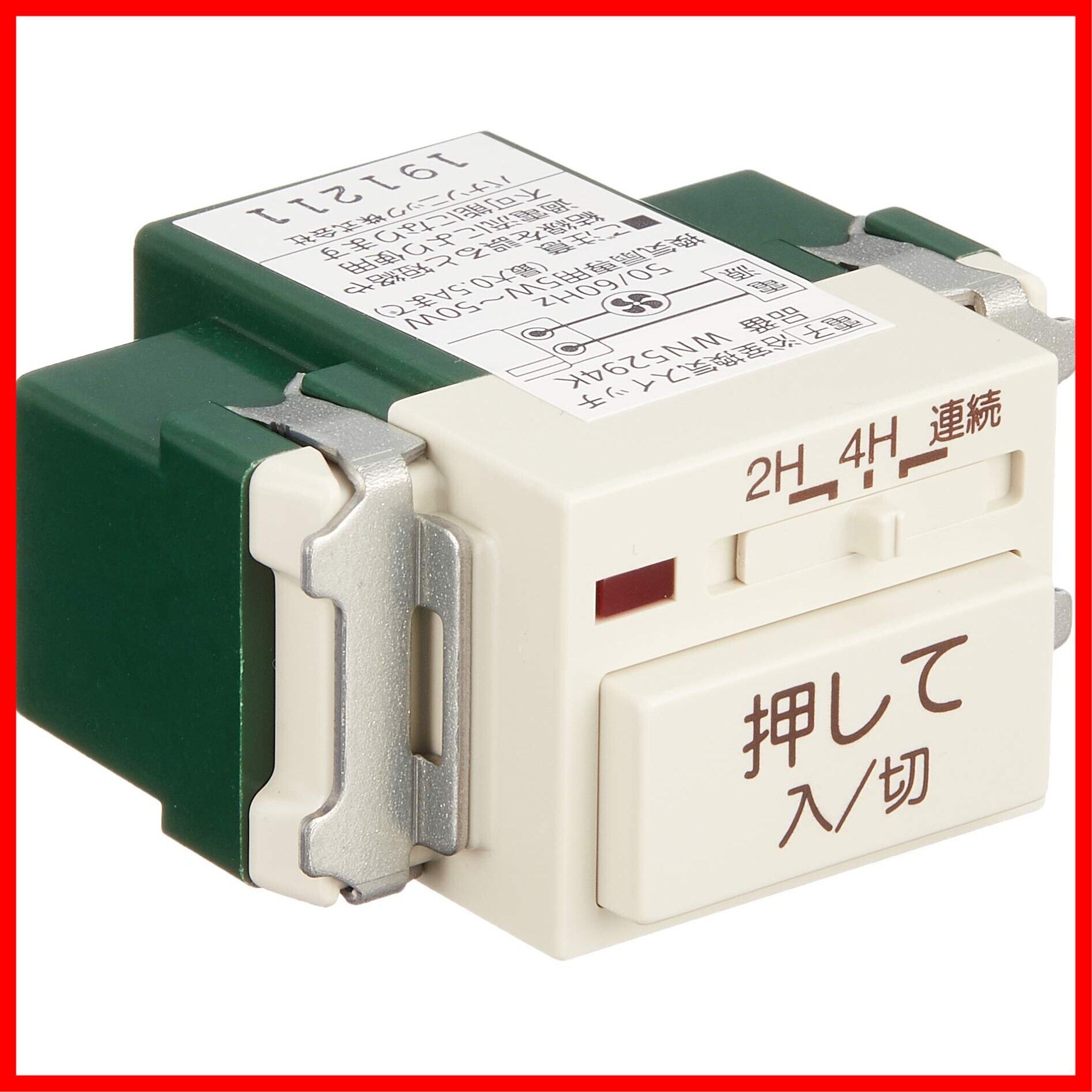 ●電子浴室換気タイマスイッチ<br>●4時間・2時間・連続ON付<br>●適合負荷:換気扇専用 5~50W用<br>●0.5A 100V AC<br>●連続ONはできません<br>●2か所操作はできません<br>●フルカラー1個モジュールですので1個用のスイッチボックスに組み合わせ取付可能。<br>●換気扇が回っているとき点灯します。