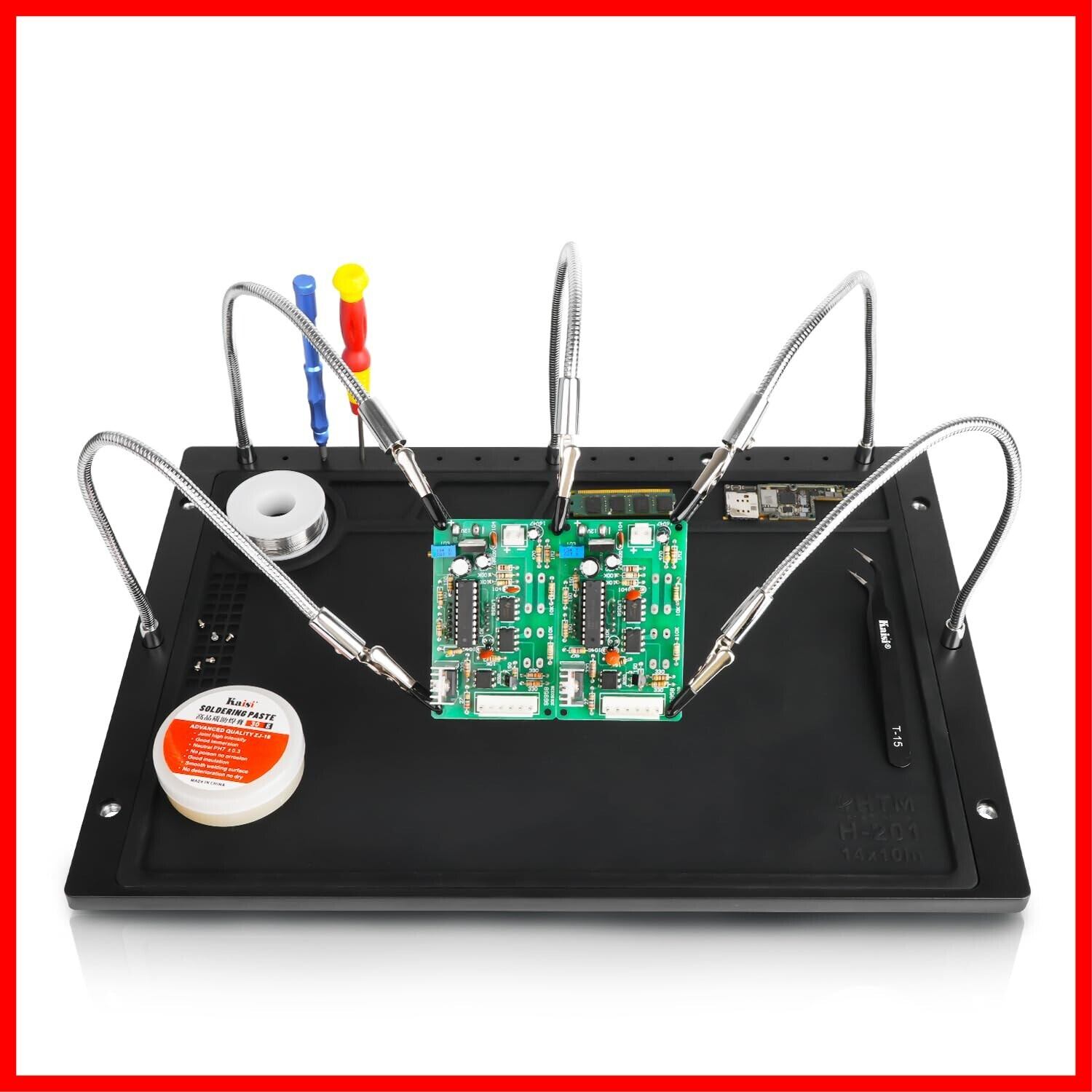 Kaisi ハンダゴテ台 はんだ付け補助具はんだマット付き 5本のフレキシブルアームと耐熱シリコン製のはんだマットベースを備えたはんだ付けツールキット はんだ付け 組み立て 修理 モデリング 趣味 手工芸 ジュエリー制作に使用できます