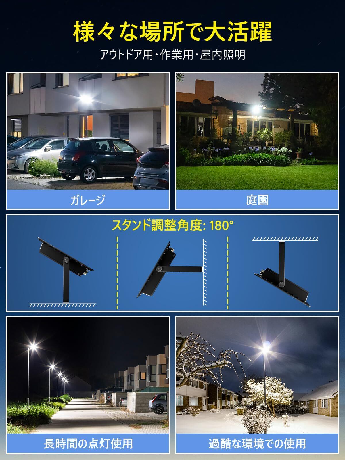 【IP66防水&TVS保護装置内蔵安全性UP&LED投光器として屋外照明に最適】このLED投光器はIP66の防水・防塵・耐食性を備えており、投光器の内部に粉塵が入らず、台風や豪雨の影響を受けず、屋外の壁に簡単・安心に設置できます。雨や雪が多い日でも安心してご使用いただけます。全ての投光器は工場出荷前に厳しい防水テストに合格しました。また、この投光器にはTVS保護機能が組み込まれており、安全性を大幅に向上させます。ガレージ、庭園、トンネル、ガレージ、舞台照明、屋外照明、バーベキュー、ガソリンスタンド、夜間イベント、作業灯、看板灯灯工事用ライトなどに最適です。この作業灯はランプ交換が不要で、メンテナンスコストを大幅に削減でき、保守の難しい場所などにも最適なLED投光器です。