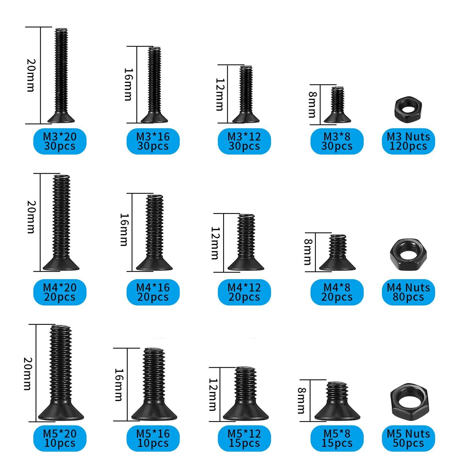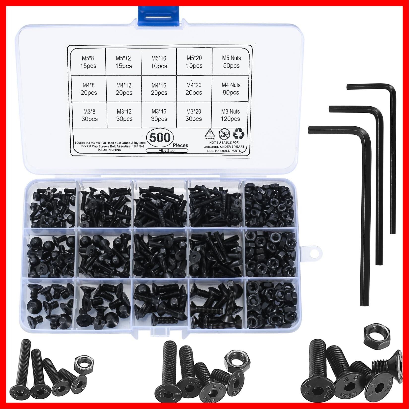 【内容物】M3、M4、M5六角頭ネジとナット500個、レンチ3本、毎日の使用に十分な、ほとんどのニーズを満たし、ご自宅の必需品です。