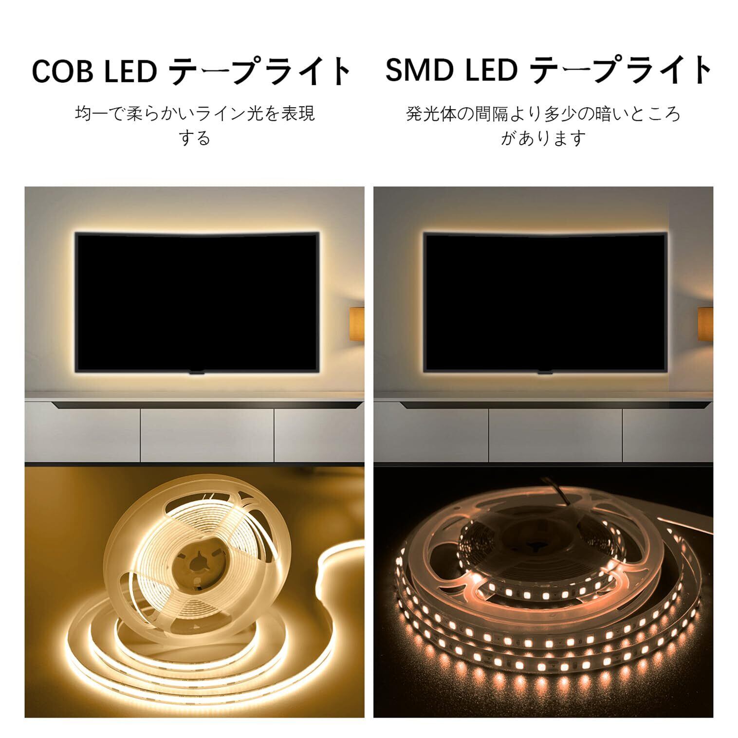 【在庫セール】ShineBurky ledテープライト COB 高密度 高輝度 320LEDs/m 10段階調光 入電電圧12v 5m カット可能 両面テープ設置 テープライト cob 電球色 | カウカウ物販