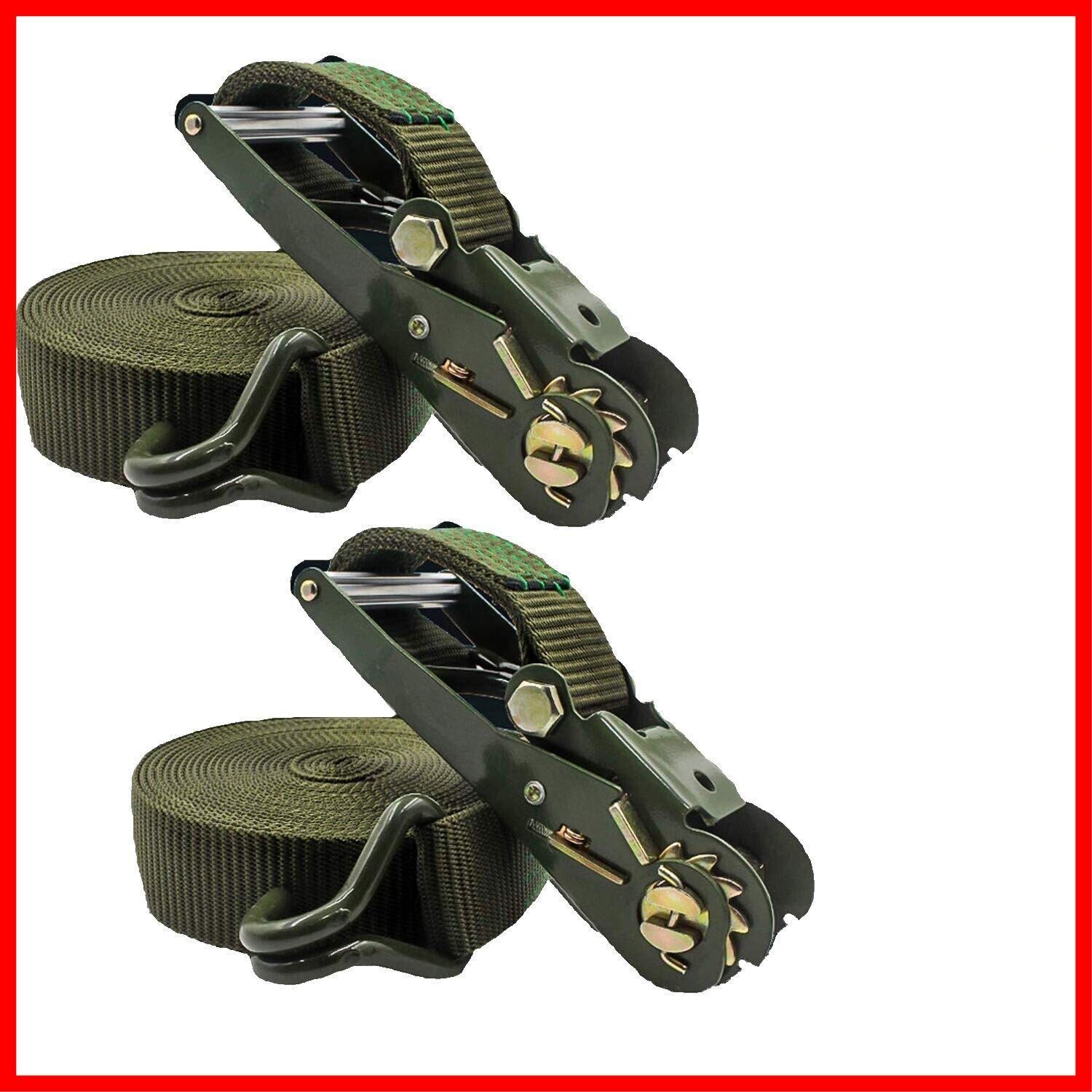 KOKITEA荷締めベルト ラチェット式タイダウンベルト ラッシングベルト 荷締め機 合金鋼 オートバイ グリーン 長4m 幅3.8cm 破断荷重1600kg(2本)