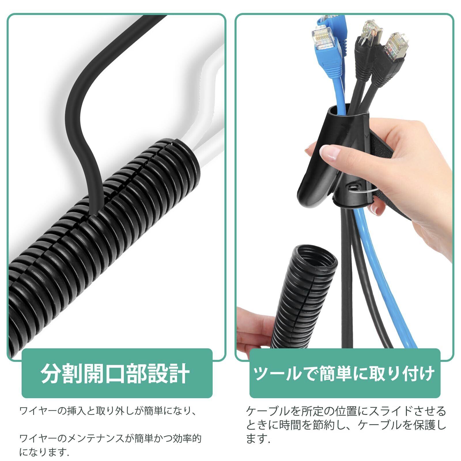 配線チューブ コルゲートチューブ 全長3m 配線カバー 配線保護スリーブ チューブ ケーブル保護 噛みつき防止 セパレート構造 耐久性 車、家庭、オフィスに適用 (ブラック, 13mm)