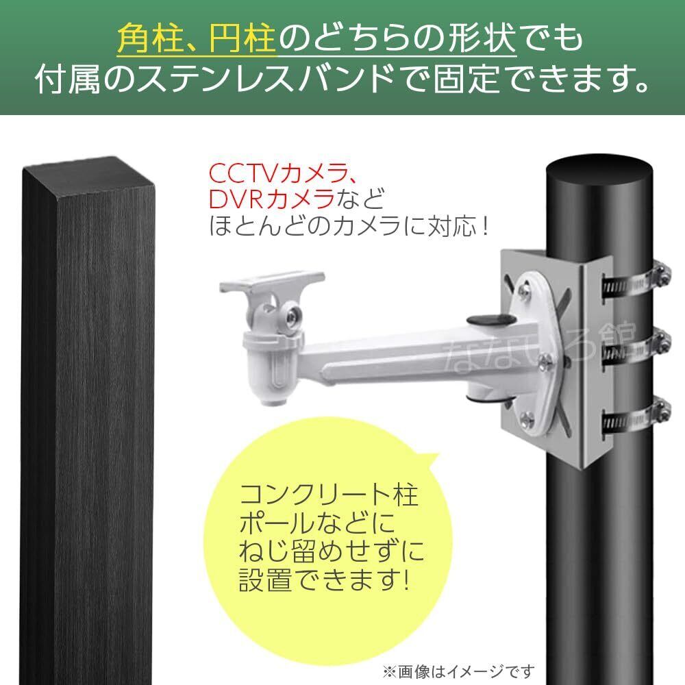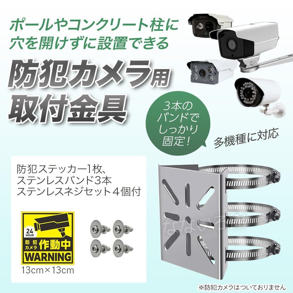 [なないろ館] 防犯カメラ 取付金具 ステンレス製 防犯ステッカー付 ハウジング ブラケット ポール 円柱 角柱 屋外 取り付け 台 ステンレスバンド3本