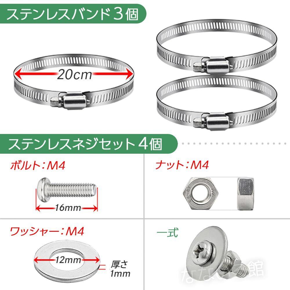 【サイズ】 ボルトM4×16mm ワッシャーM4×外径12mm厚さ1mm ナットM4 ステンレスバンド直径20cm 【材質】ステンレス CCTVカメラ、DVRカメラなど ほとんどのカメラにお使いいただけます。 サイズをよくご確認の上お求めください。