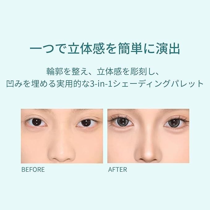 【多彩な使い方】頬骨、下顎線、アウトライン、鼻の横顔、眼窩のところにシャドウを軽くのせると、輪郭が収縮できます。微かなゴルゴ、ほうれい線、口角のくすみ、額、こめかみなどにマットハイライトを入れると、くぼみが改善されます。パールハイライトでチーク、鼻筋、口上、顎先などの部分を明るくすることができて、肌に艶感を与えます。