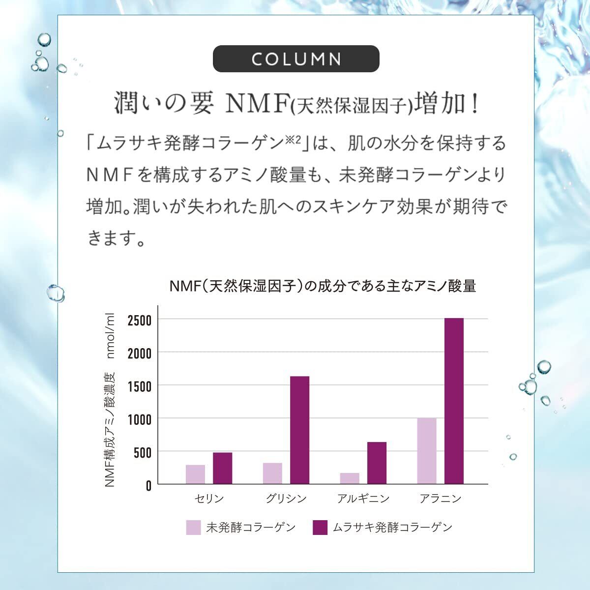 特徴 肌に潤いめぐらせ、みずみずしい肌へ導きます。