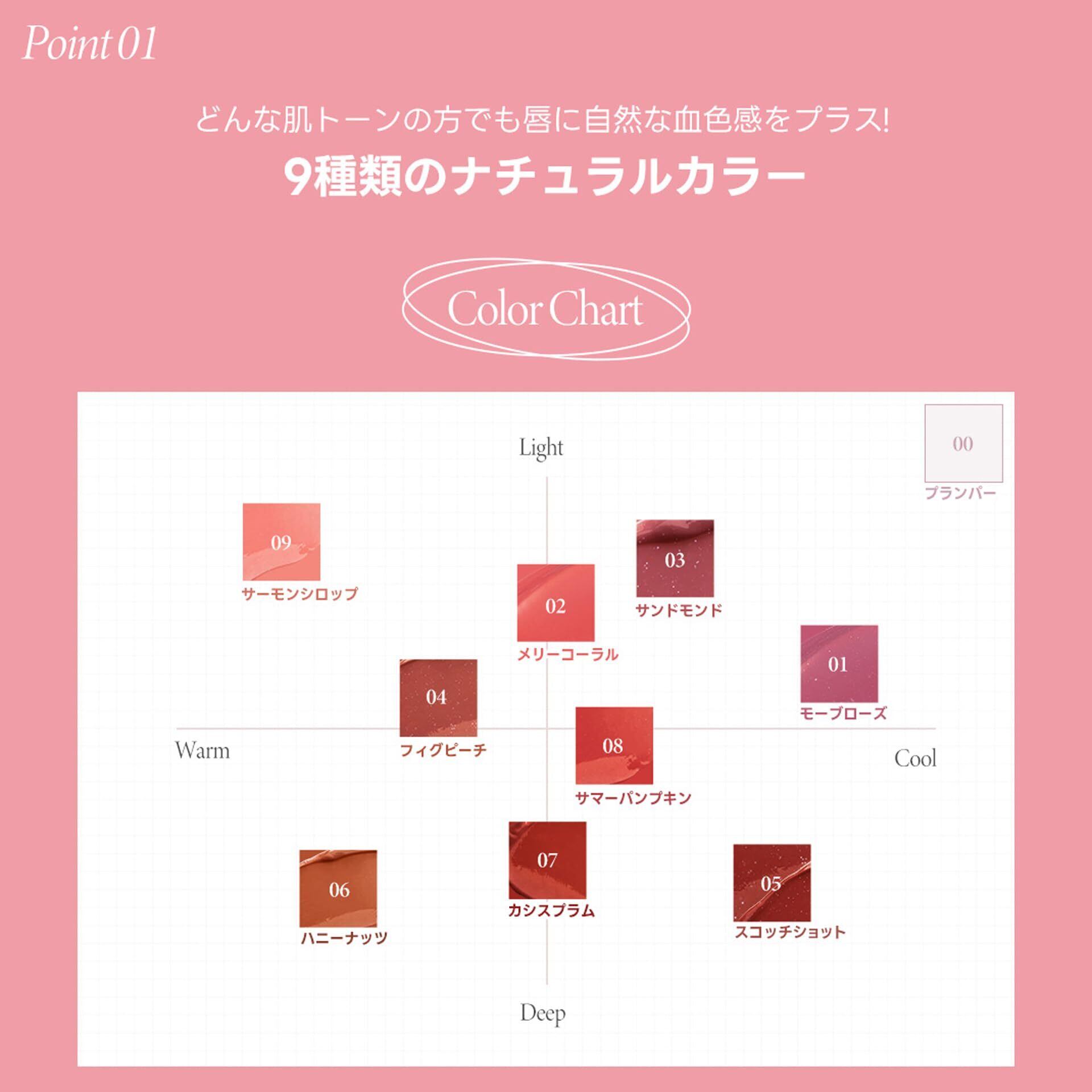 ほのかに血色感を与える9種類のナチュラルカラー